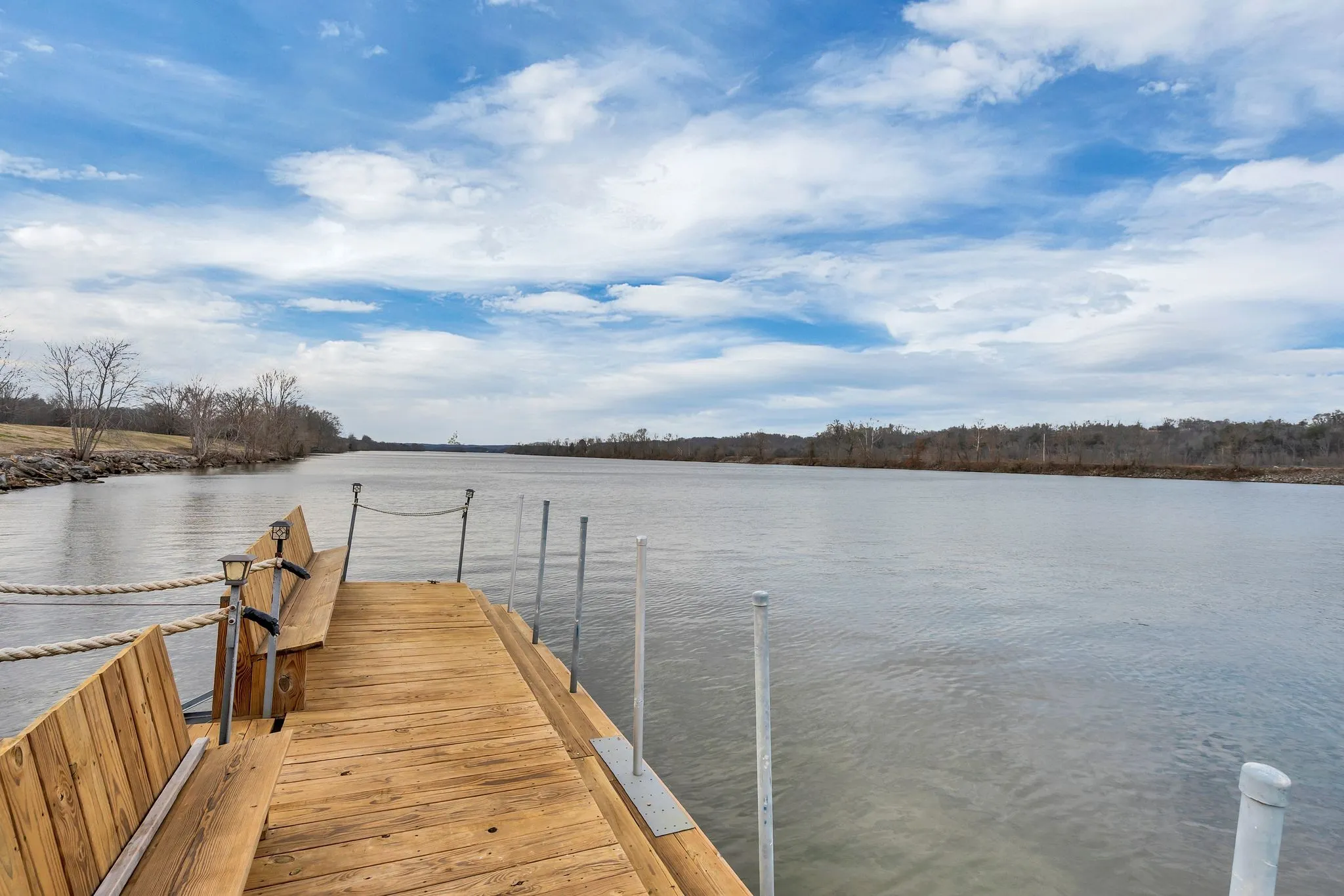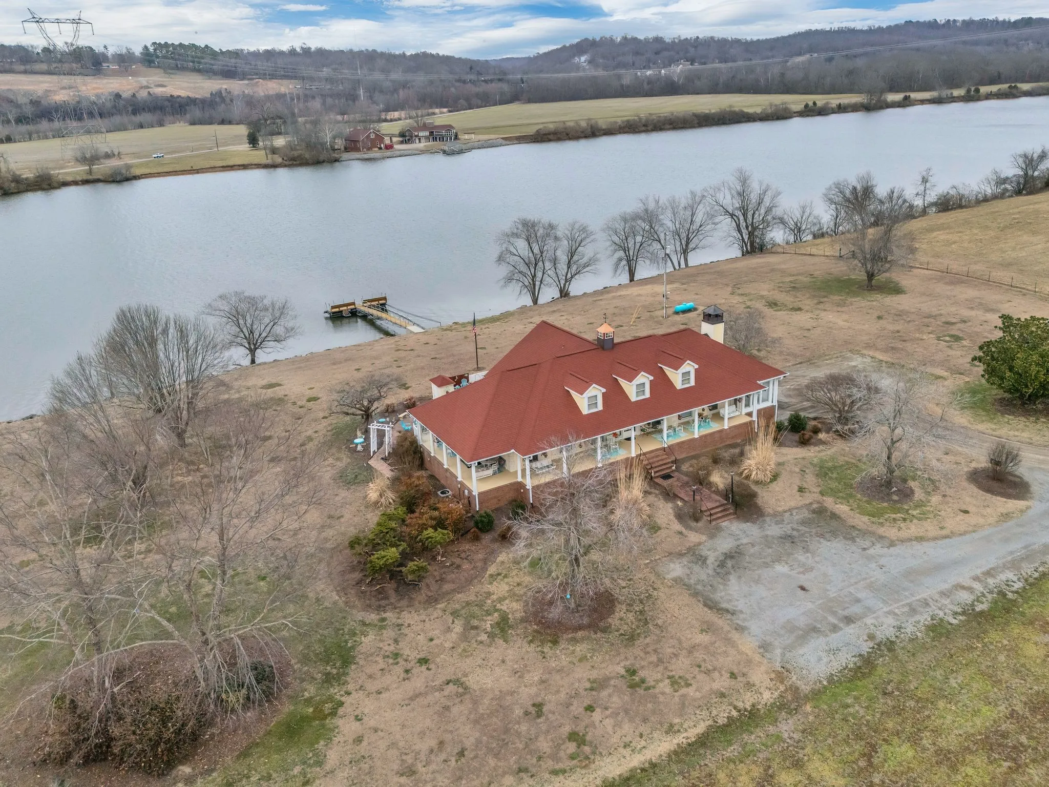 An extraordinary opportunity to own one of Tennessee’s most remarkable waterfront estates. Set along the Cumberland River, this rare offering includes a private residence with boat dock on an incredible 56 acres with river access and boat dock with built in seats on both sides (the Army Corp of Engineers approved the construction of MULTIPLE MORE BOAT DOCKS—an almost unheard-of combination. The property also features 2 courtyards, a swimming pool, fenced pool area and sits at one of the highest elevations in Cheatham County, offering exceptional privacy and breathtaking views. 3 car garage has storage space. Enjoy the perfect balance of seclusion and convenience, located less than 45 minutes from downtown Nashville and under 10 minutes to Walmart and everyday necessities. With ample land to grow and sell your own crops or simply enjoy wide-open space, this is truly a dream property. 2200 sq ft wrap around porch offers spectacular views. HUGE unfinished basement offers future flex space. Offered for the first time since being built, opportunities like this are exceedingly rare. Showings require 24-hour notice—act quickly, as properties of this caliber do not come available often. 1% lender credit with use of preferred lender.This sale includes 2 parcels – 049 064.02 AND 049 064.00 but EXCLUDING 9 acres on which the barn and bldg is on from the hwy to the water (this is the 9 acres to the right of the 2030 Lot – the plot lines drawn on the photo includes the nine acres and storage bldg/barn, but it will not be included in the sale). Showings by appointment only please.