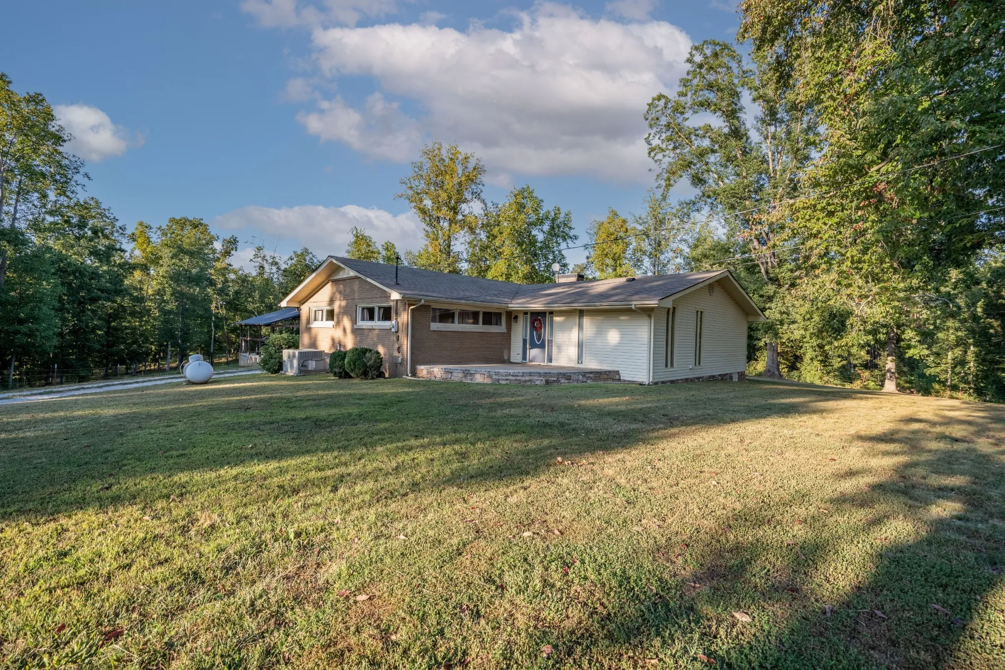 Discover this charming ranch home situated on 6 acres of serene land. The property boasts a propane gas fireplace, a convenient dog grooming station in the laundry room, and includes a washer and dryer. Recent upgrades include all-new water lines installed in December 2023 with a 10-year warranty, a new kitchen drain also covered by a 10-year warranty, fresh paint throughout, and enhanced pest repellent attic insulation with a new vapor barrier in the crawl space. Additional updates feature a new junction box in the attic and a new one for the water heater and a modern keyless entry door 2 new crawlspace doors. HVAC and air ducts recentlyn professionally cleaned. The kitchen is equipped with stainless steel appliances, including a new dishwasher. The carport now has a 50-amp RV outlet with a single outlet and light switch. Other improvements include a new crawl space door, a fully fenced yard with barbed wire, and a newly added outdoor firepit for cozy gatherings. Well water available on property. Only 15 minutes from main strip and 12 minutes from the hospital.