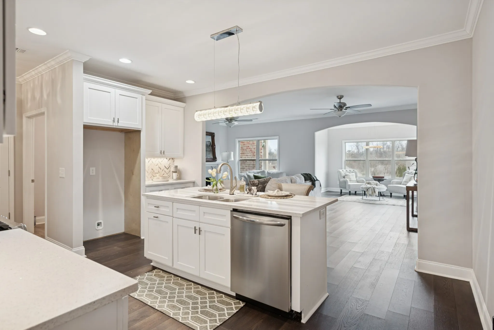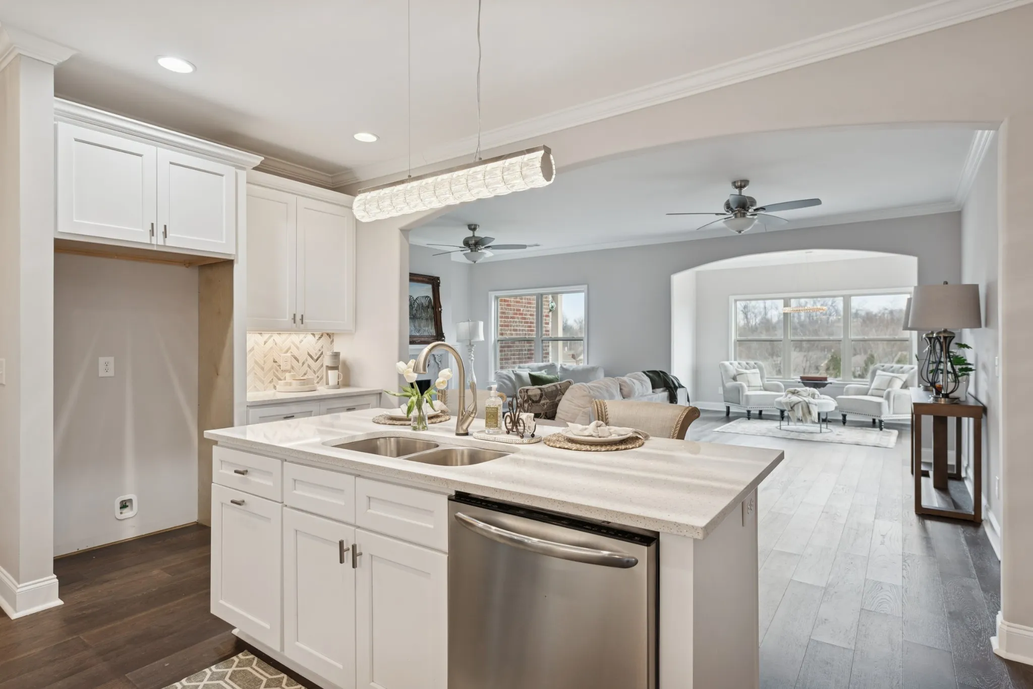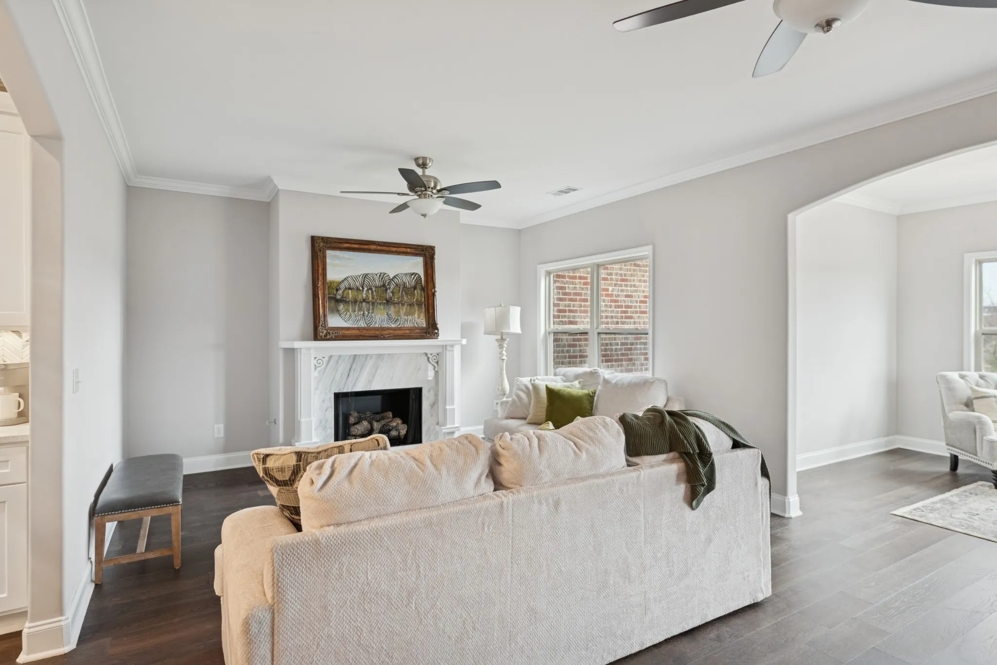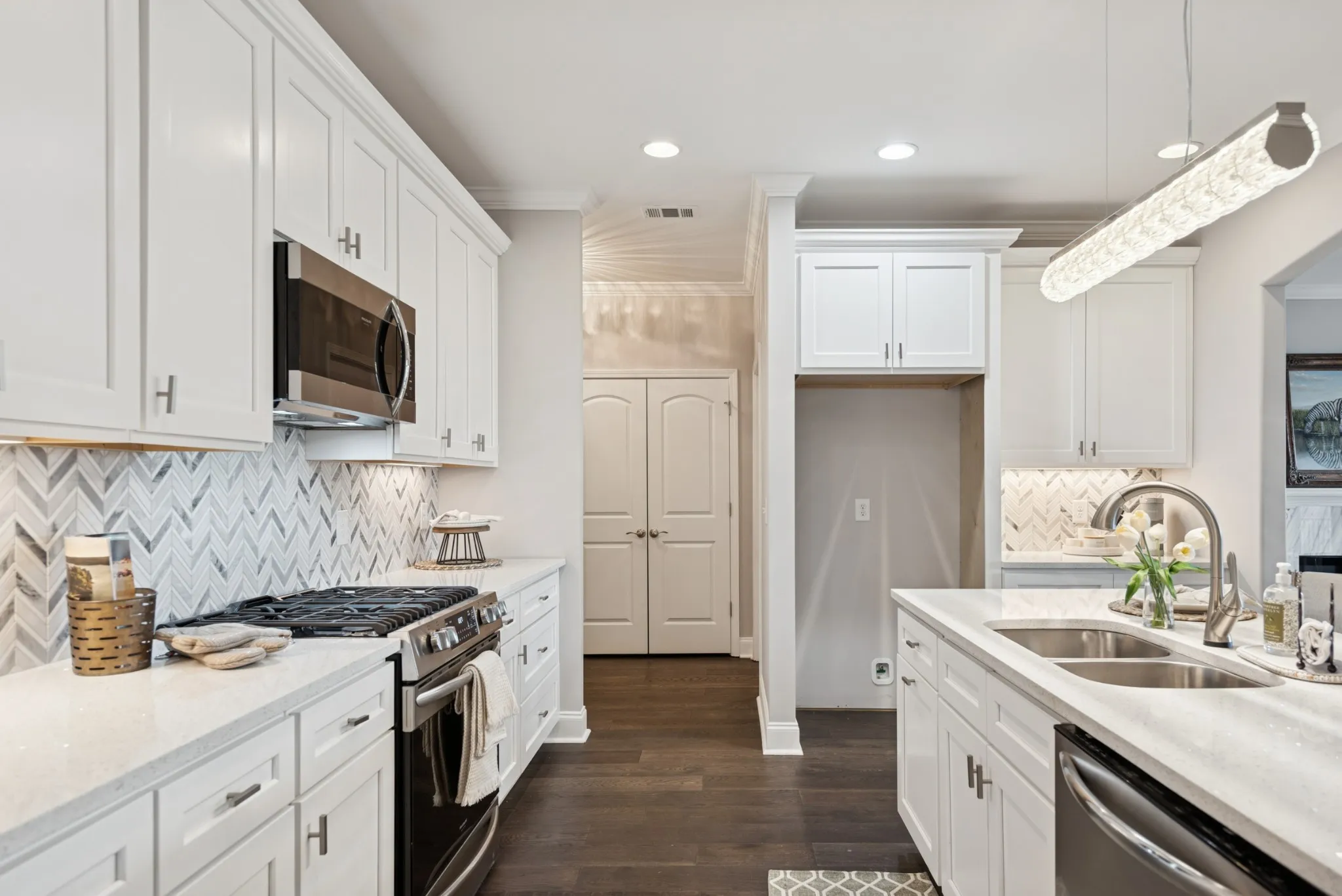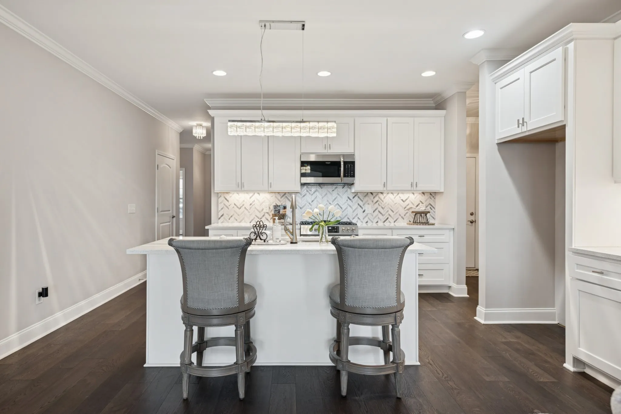 This beautiful villa features hardwood floors, quartz countertops in the kitchen, a gas stove, and crisp white cabinetry. The spacious primary suite includes a large bedroom, an oversized walk-in closet, and a tile shower with quartz countertops in the primary bath. Two bedrooms are conveniently located on the main level. Situated on a quiet cul-de-sac lot, the home also offers a large patio perfect for entertaining while enjoying beautiful views. The HOA covers all landscaping and exterior maintenance, providing a truly low-maintenance lifestyle. Residents also enjoy neighborhood amenities such as a pool, clubhouse, and sidewalk-lined streets perfect for walking and relaxation.