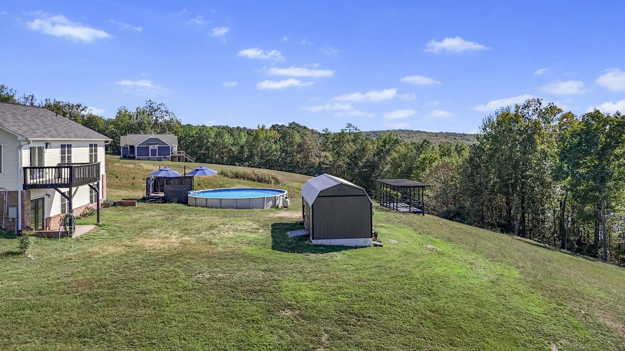 Set on a 1 acre lot, the property offers space and privacy, with neighbors not on top of you—creating a sense of peace, tranquility, and serenity. The subdivision is bordered by U.S. Fish and Wildlife protected lands, preserving the natural beauty of the area where deer roam freely and eagles are often seen. UTVs and ATVs are welcome with nearby trails. Outdoor features include a covered porch overlooking the lake, an above-ground pool, a he/she shed with electricity, and plenty of storage.