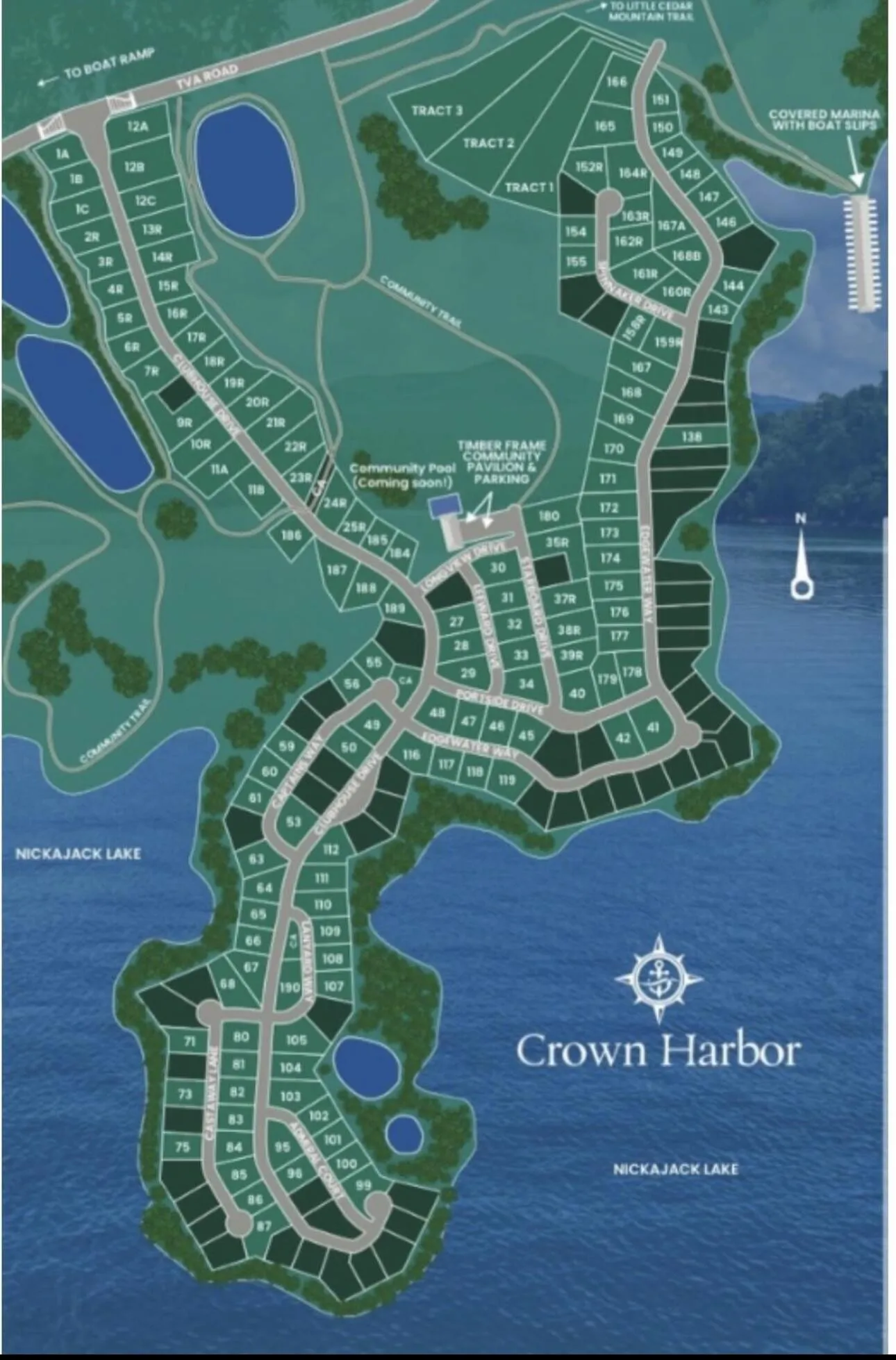 - Directions: Take I-24 to Exit 158, Take TVA road to Crown Harbor Subdivision. Follow clubhouse drive turn on to Admiral Court. Sign on property
