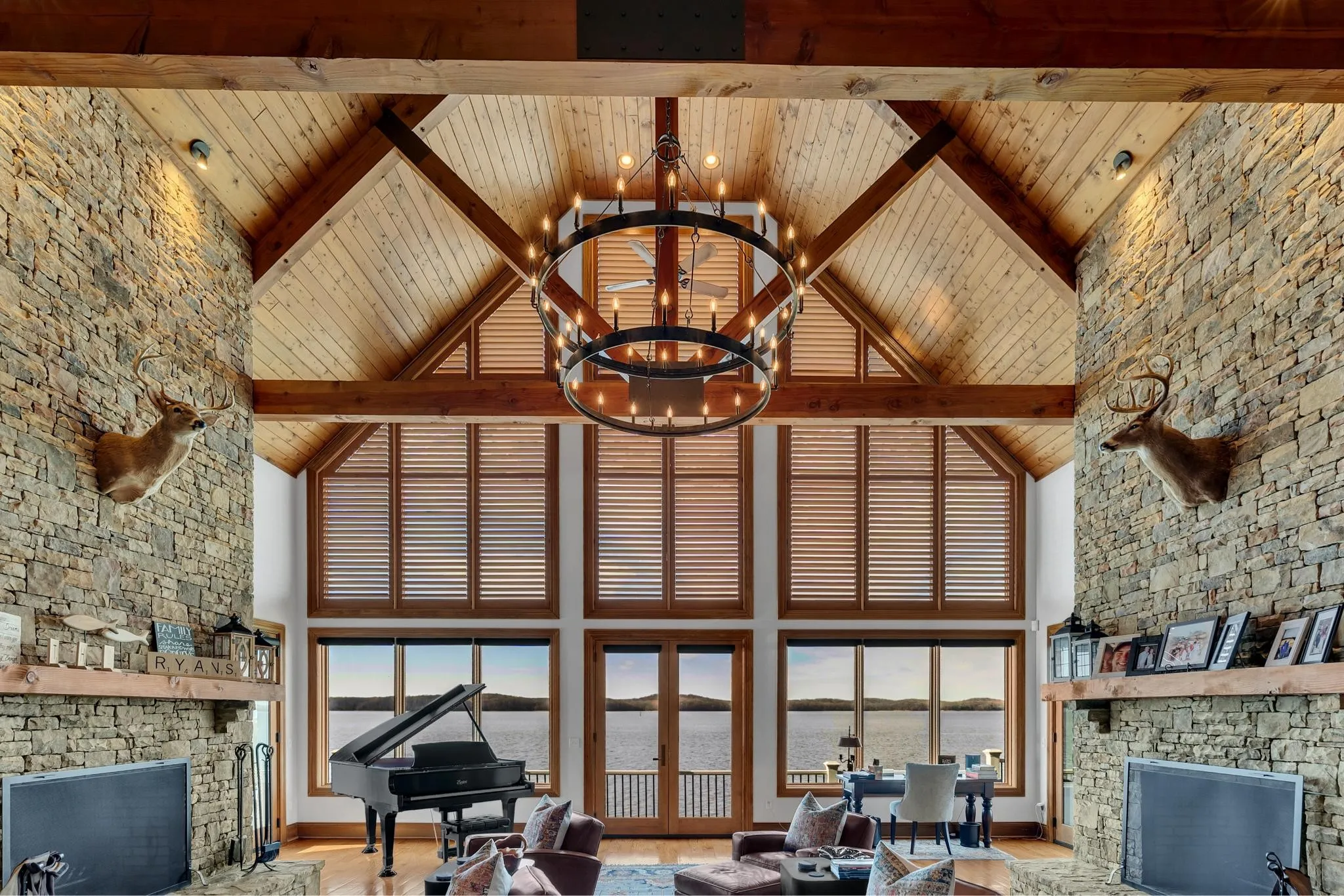 Welcome to Eagle Shore Estate, where luxury meets recreation on the eastern shores of Kentucky Lake. This stunning, privately gated estate offers approximately 6,000 sq ft of refined living space with premium finishes, two fireplaces, smart home features, and spa-like amenities designed for ultimate comfort and enjoyment. The four-stall attached epoxy-finished garage space provides ample parking and storage. Step outside and enjoy the 28 acres of waterfront paradise that offers manicured grounds, a private pebble beach, a concrete boat launch, and a multi-slip dock system. This stunning park-like landscape is loaded with mature white oak trees meticulously managed with breathtaking million-dollar waterfront views and amazing sunsets. Whether it’s boating, kayaking, fishing, summertime water sports, or sunset cruises, limitless outdoor recreation awaits. Five additional estate lots have been thoughtfully surveyed, complete with preliminary soil testing, offering flexibility for extended family residences, guest homes, or future development.