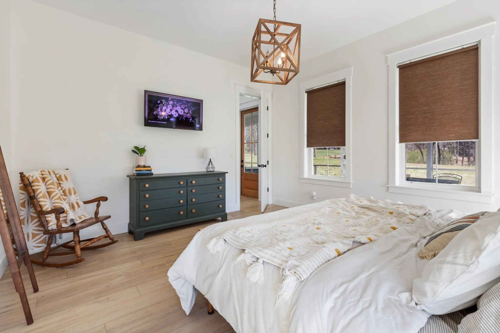 This home is the perfect balance of feeling peaceful and quiet while being just a 8 minute drive into Dickson, TN. Nestled on over 5 acres of serene countryside with creek access, this home offers the perfect blend of quiet luxury and nature. The heart of the home is the spacious kitchen, featuring a massive island with sleek white quartz counter tops, GE Cafe appliances, and a designated coffee bar–perfect for entertaining. The kitchen is open to the dining and living areas–this open concept area boasts 24′ ceilings. In the living room you will find a glass garage door that fully opens to a large screened in porch, ideal for indoor/outdoor living. Whether you are enjoying the master suite, large laundry/office area, large bonus room, or the views from the screened in porch, this is surely a house you don’t want to miss. New landscaping also has a built-in irrigation system.