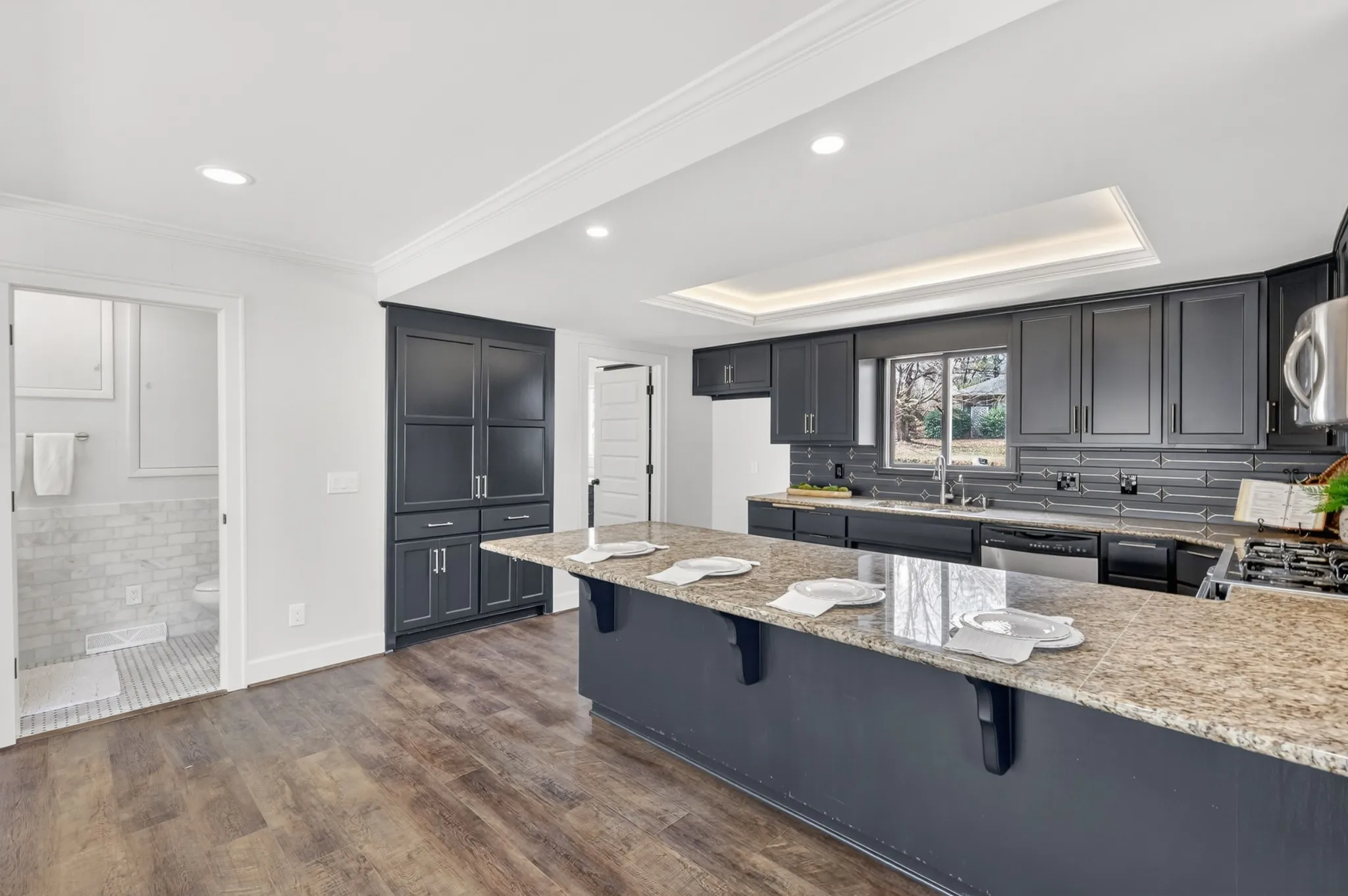The updated kitchen features painted cabinets (new doors & hardware!) and a stylish backsplash, opening seamlessly to the living and dining spaces. Recent upgrades include new LVP flooring, new lighting, fresh paint throughout, new interior doors, new front and friend’s entrance doors, and freshly painted exterior wood siding. The fully reconfigured primary suite is a true retreat with a gorgeous tile shower, freestanding tub, dual vanities, and walk-in closet (master closet to be trimmed out). Additional improvements include a renovated powder bath and added laundry room cabinetry.