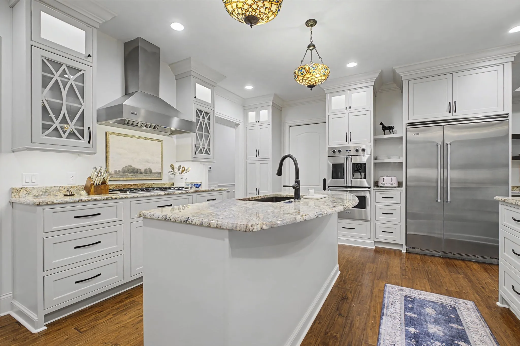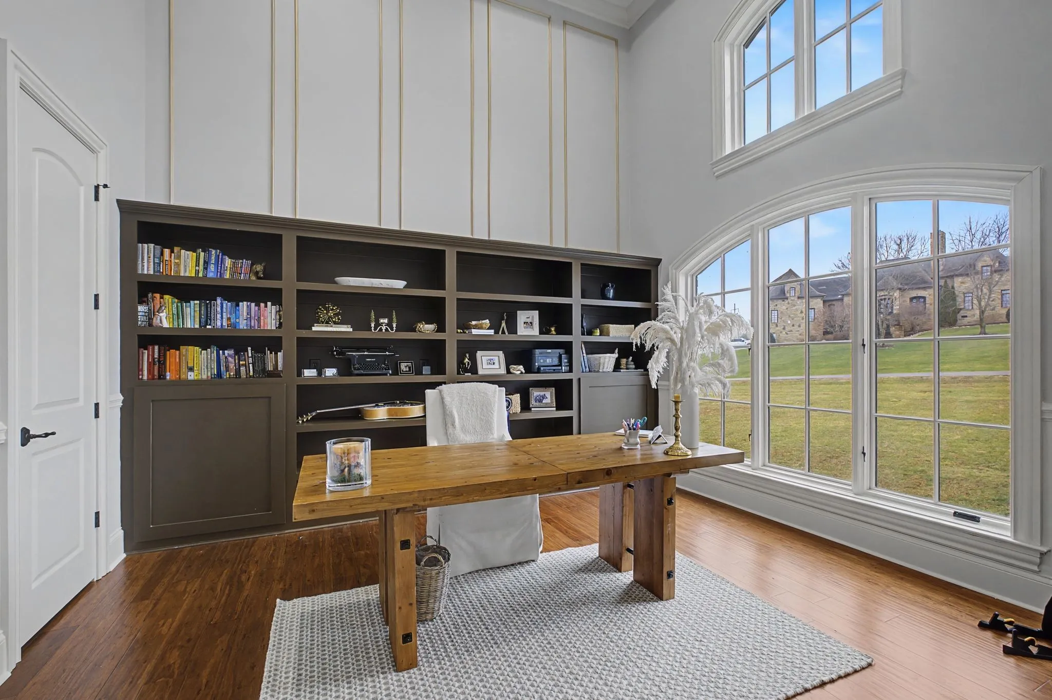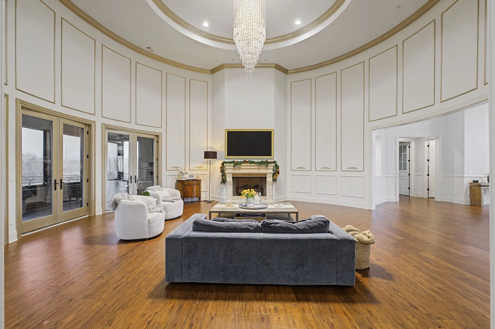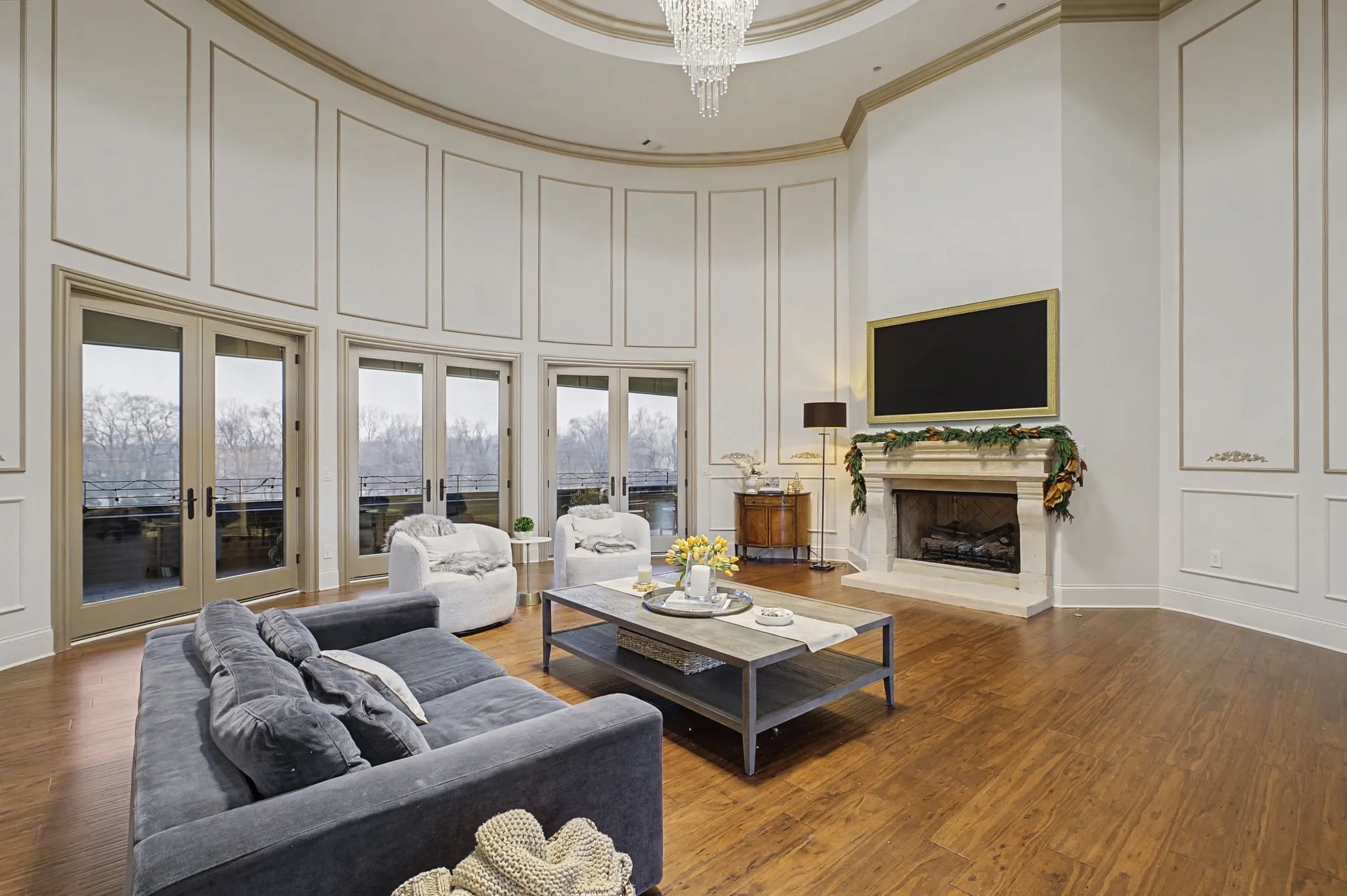 Set on over two acres in the rolling countryside of Arrington, this custom luxury estate blends grand architecture with warm, livable elegance. Designed with a combination of the European Baroque style with a blend of American traditional, creating a unique atmosphere of simple elegance with grace. The moment you enter, soaring ceilings, dramatic designer lighting, beautiful hardwood flooring, and handcrafted millwork create an unforgettable first impression, while a stunning round, ballroom-inspired living room anchors the home with curated finishes. At the heart of the home, the chef’s kitchen is a showpiece built for effortless hosting, featuring double islands, dual sinks, a wet bar, walk-in serving and storage pantries and a full suite of professional-grade Viking appliances. Flowing seamlessly into a coffered-ceiling family room with stone fireplace creates the perfect gathering space. The main-level primary wing is a private retreat designed for total relaxation complete with spa-inspired bath showcasing a walk-through shower, dual vanities, private twin toilets, expansive walk-in closets, and a dedicated laundry. A light-filled sitting room with fireplace and built-in office is the perfect at home workspace. Every guest bedroom is en-suite, offering comfort for family and visitors alike. Outside, an expansive covered patio with fireplace and multiple TV stations extends the living space into a true outdoor oasis, ideal for year-round entertaining and quiet evenings overlooking the peaceful acreage. Just a short walk to Arrington Elementary and minutes from Arrington Vineyards, Franklin, and Nashville, this home offers the rare combination of luxury, space, and convenience.