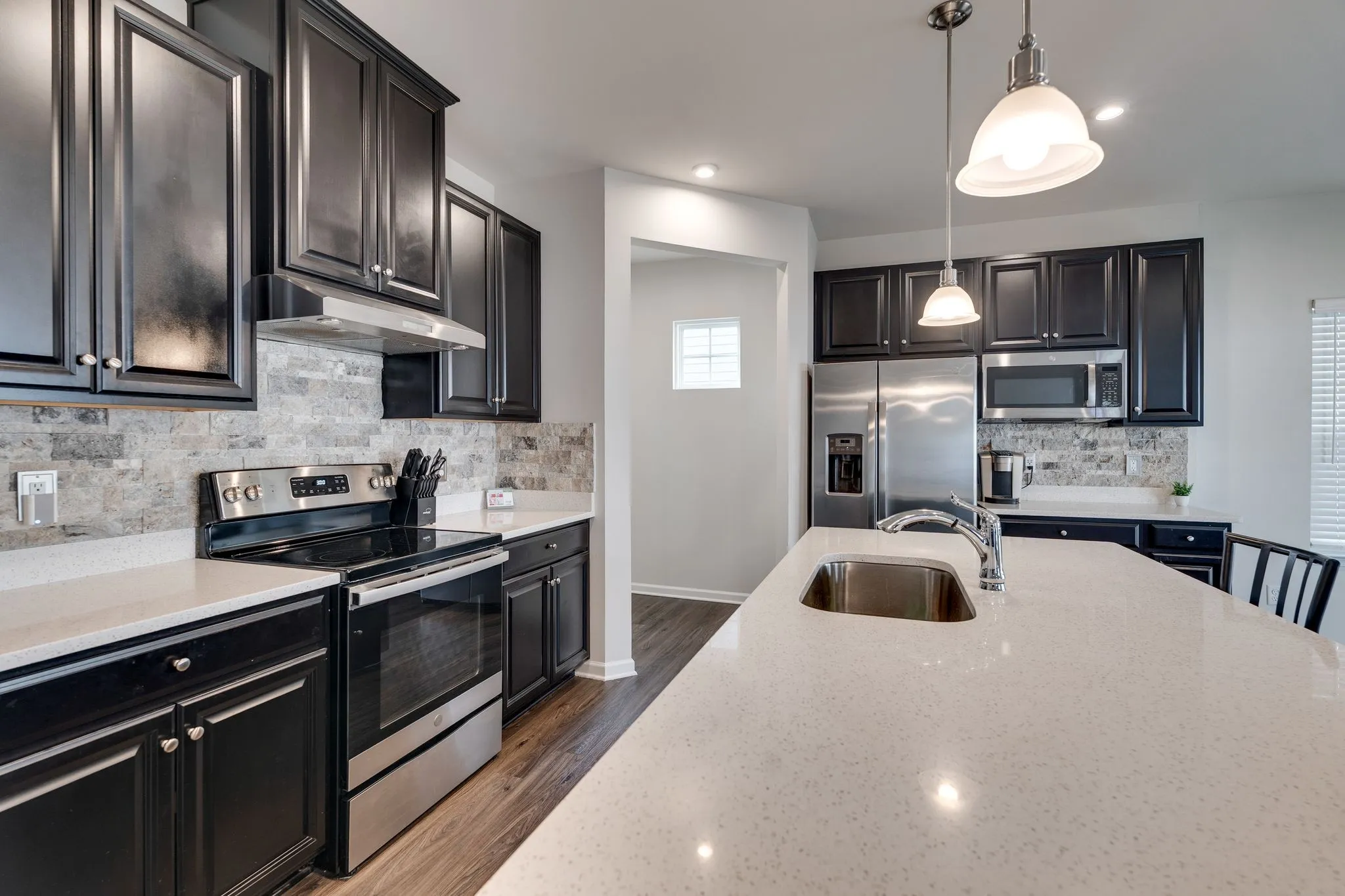 Welcome Home! This property offers fresh paint throughout a spacious open living space to a thoughtful 2nd level. Kitchen offers a huge island and a patio view to enjoy your fenced back yard. Perfect for entertaining. The staircase features a cascading ceiling. Primary Suite has a huge closet and tile shower. The 2nd level living space is perfect to get away from the primary living level or have a more intimate setting. TESLA charger installed in custom garage to charge any EV.
