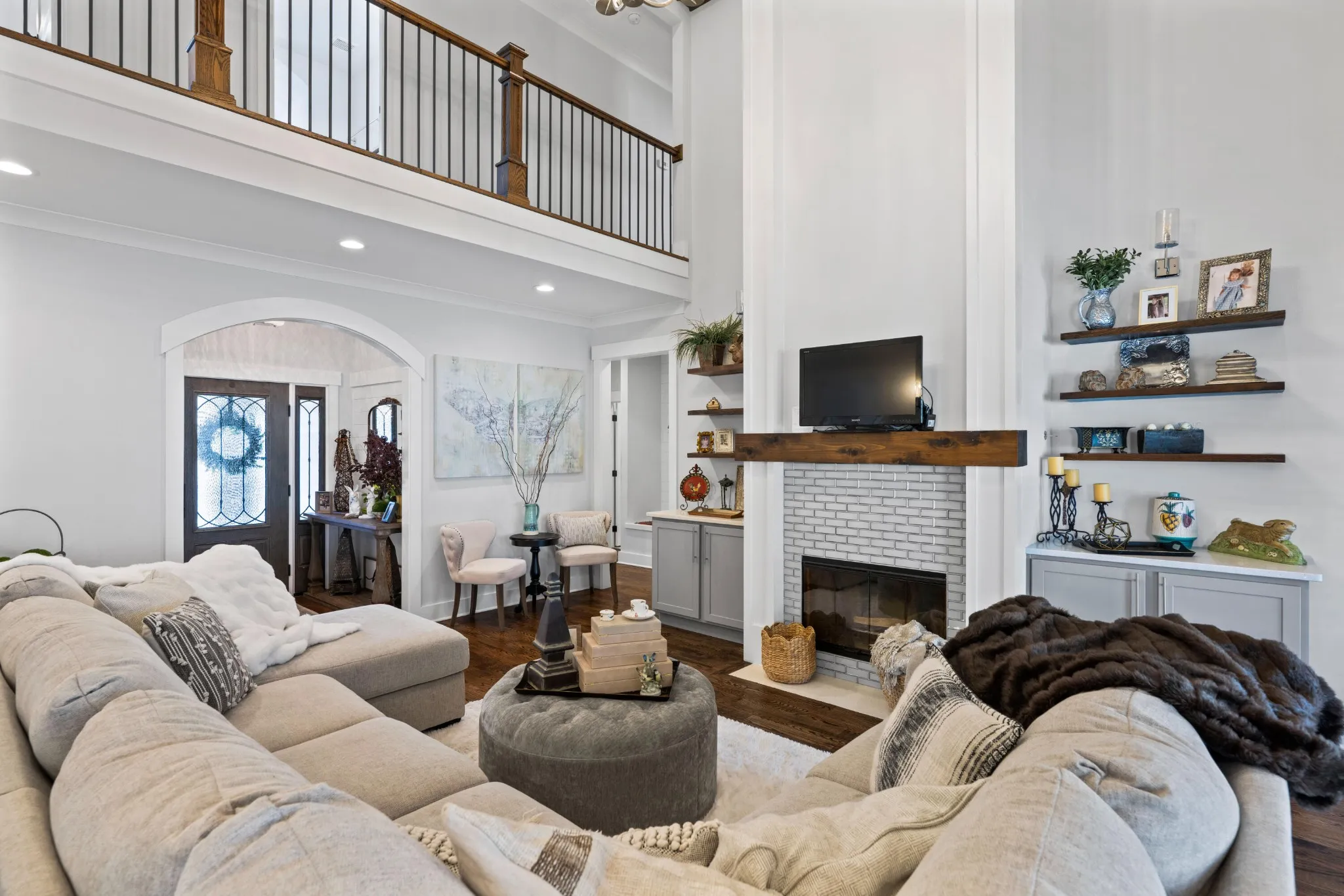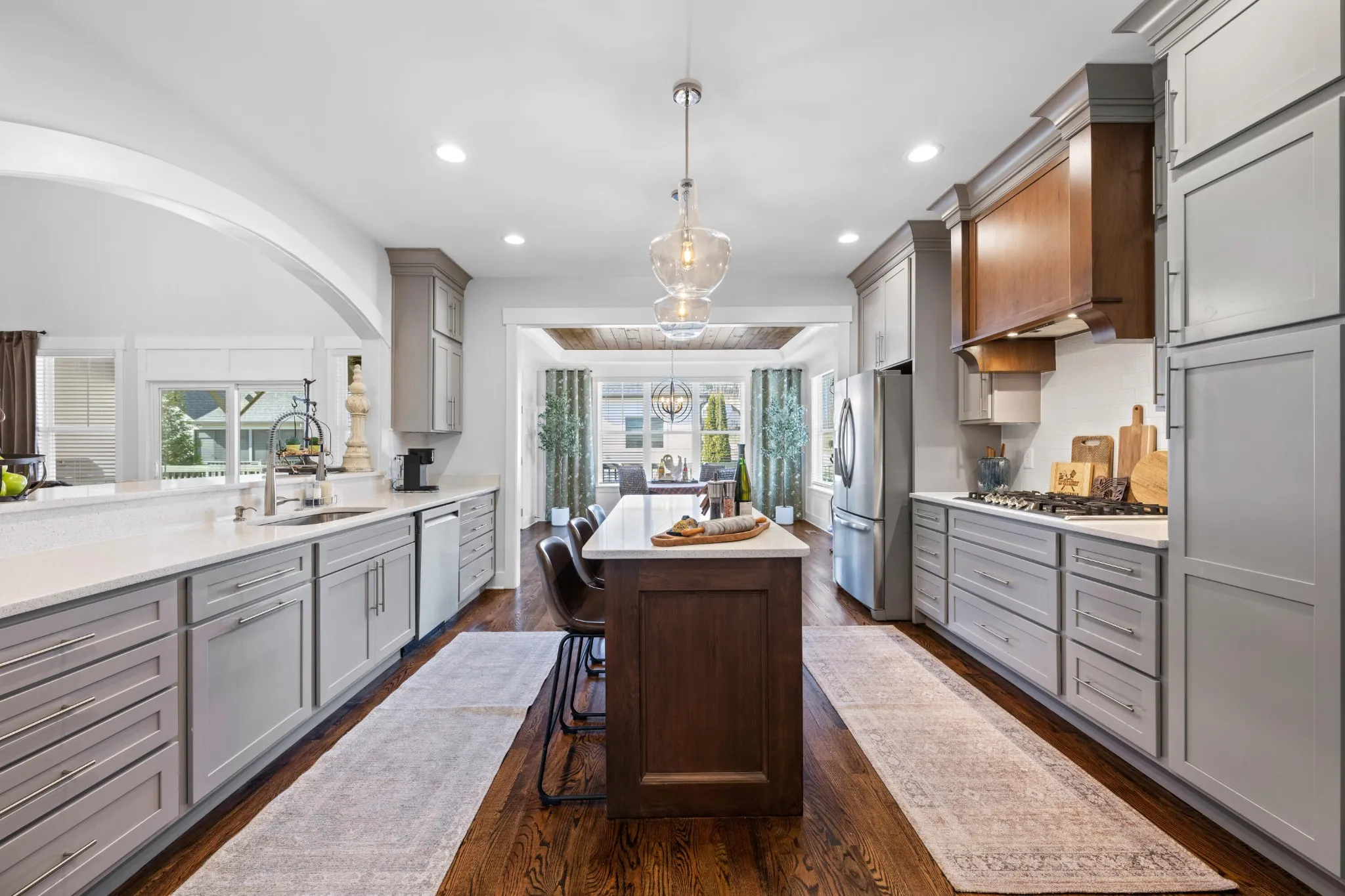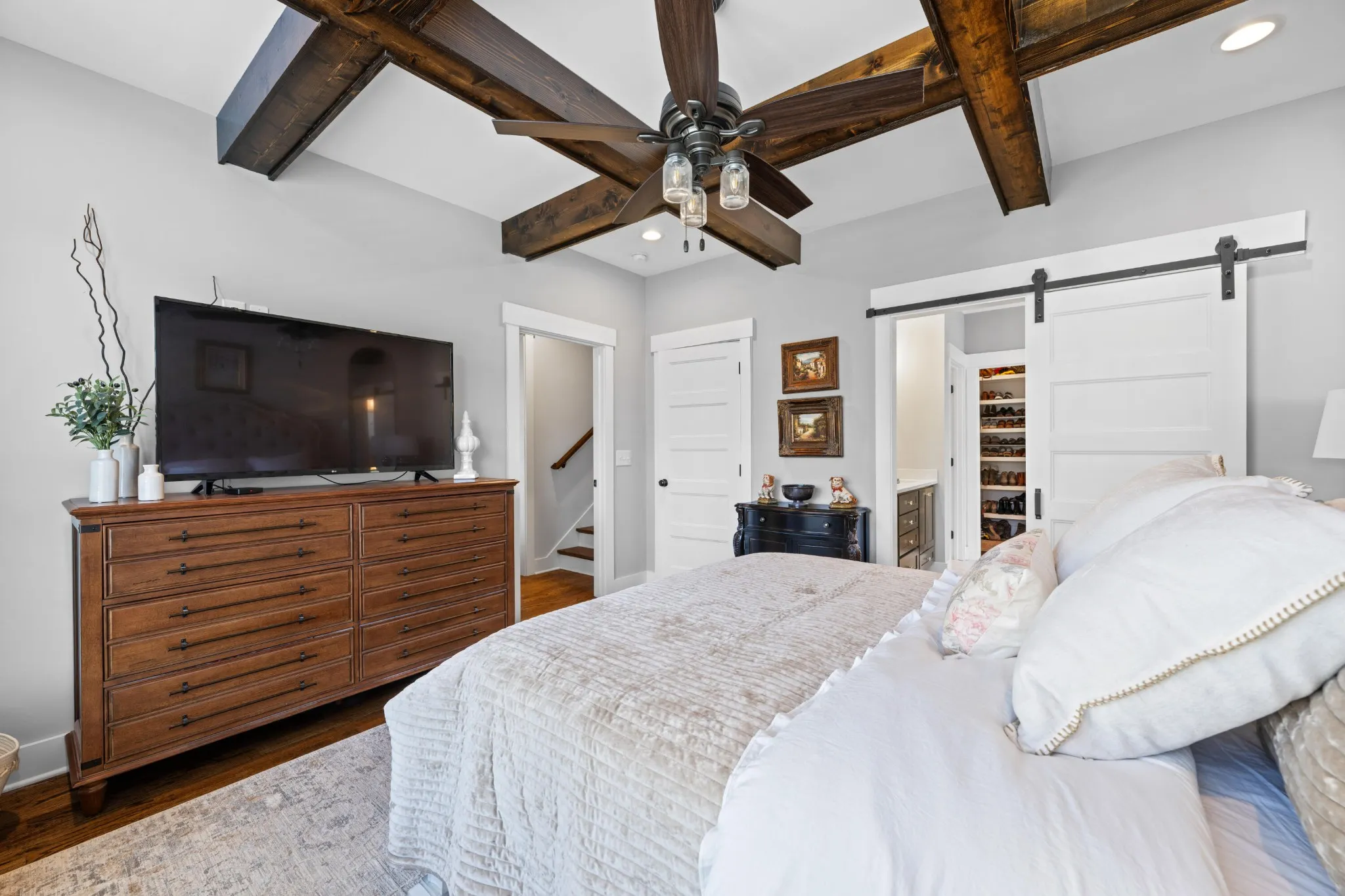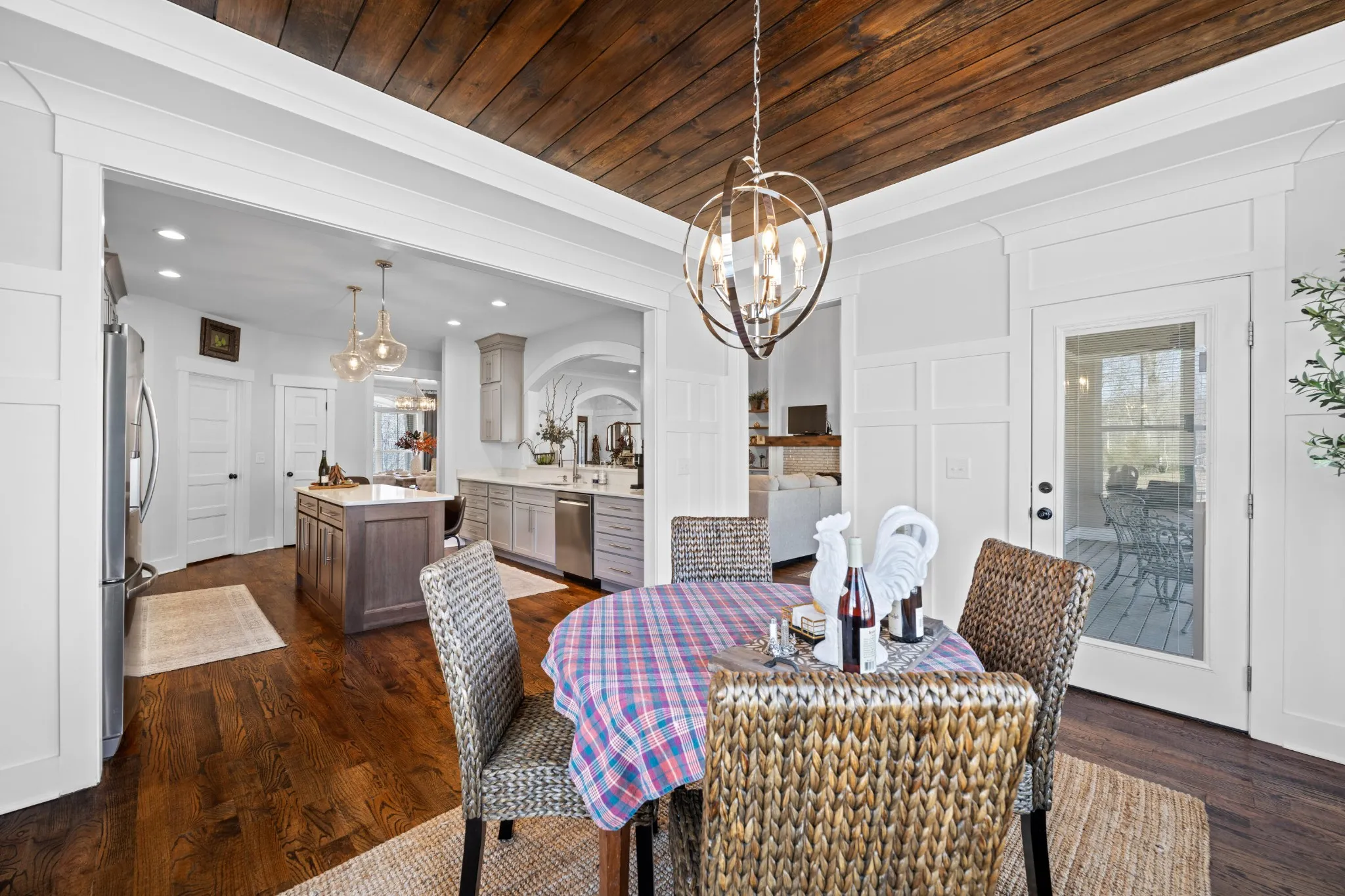 Inside, the open-concept layout seamlessly connects the kitchen, dining, and living areas, creating an inviting space for gatherings and everyday living. Thoughtful upgrades shine throughout, including custom trim work, decorative beams, and designer accent walls that add warmth and character to every room.