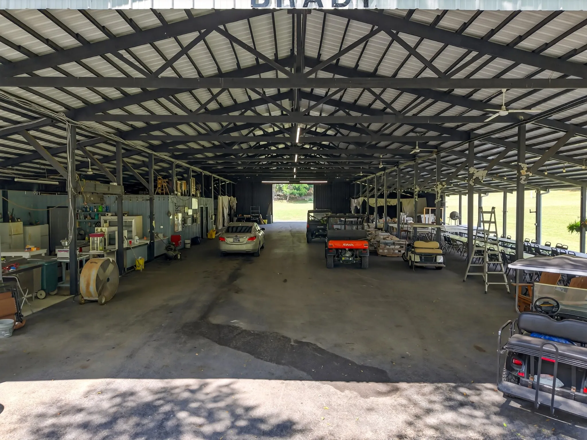 Expansive pavilion with concession areas, bathrooms, and showers