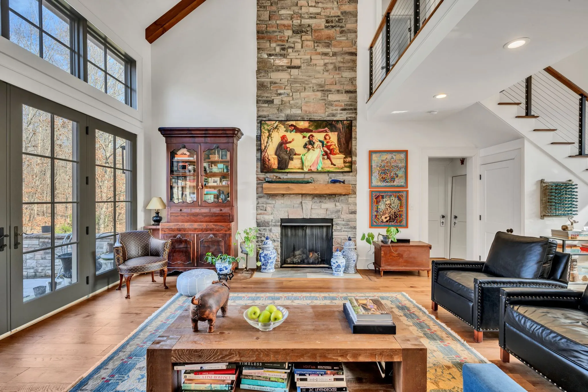 Inside, the home showcases immense craftsmanship and elevated finishes throughout. A soaring two-story great room anchored by a stunning stone fireplace sets the tone, flowing effortlessly into the open-concept living spaces designed for gathering and connection.