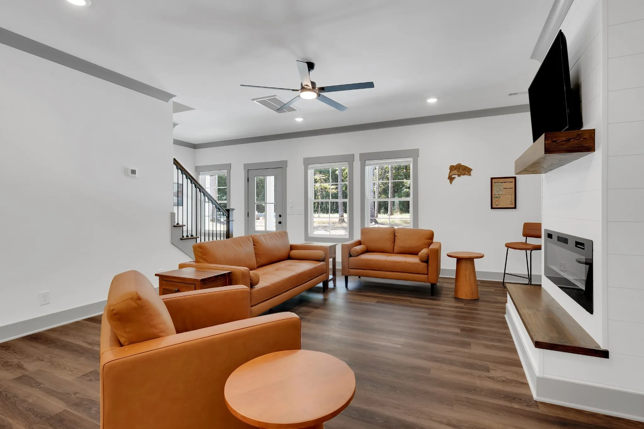 Like New Airbnb Near Tims Ford Lake. All Hardie Board/Batton and Stone. 1 mile from Pleasant Grove public access boat ramp- Beautiful Treed lot- 3 huge Bedrooms with 2 and a half baths. 750 square foot Heated and Cooled Garage-Luxury Vinyl Plank Flooring throughout. Fireplace w Ship lap- primary Suite with Walk In Tile Shower- Wonderful AirBnB Property-Garage can be used as extra entertaining space/playroom as it is also heated and cooled.Large covered rear Deck. Come see it, YOU’ll Love it. Ready for immediate occupancy.