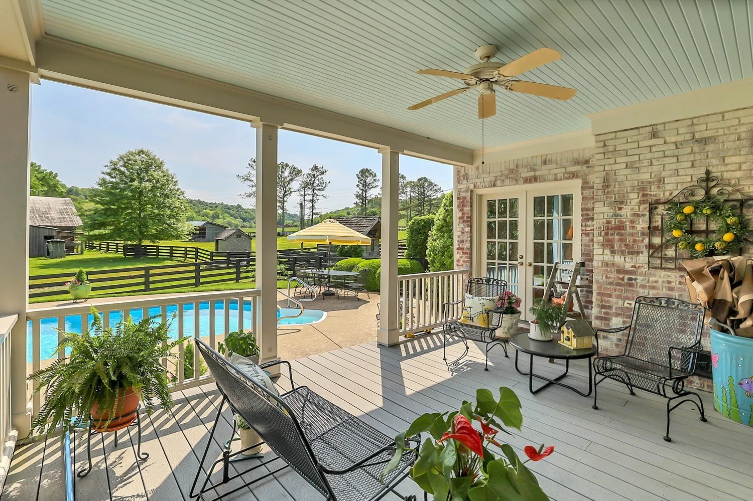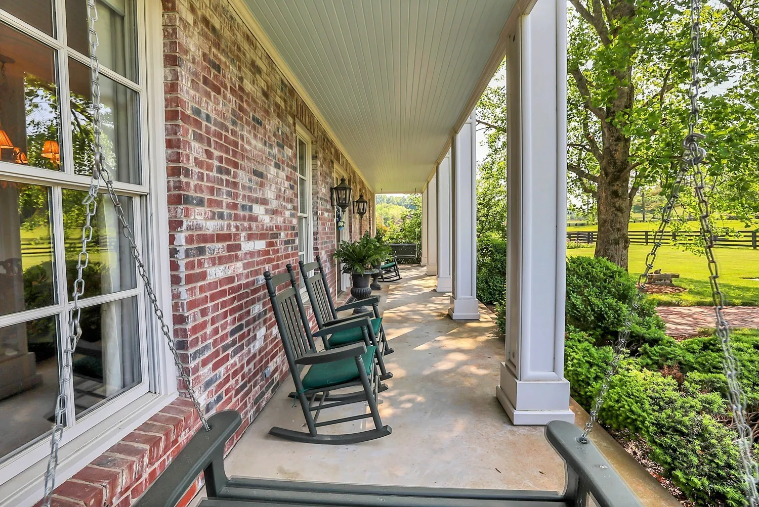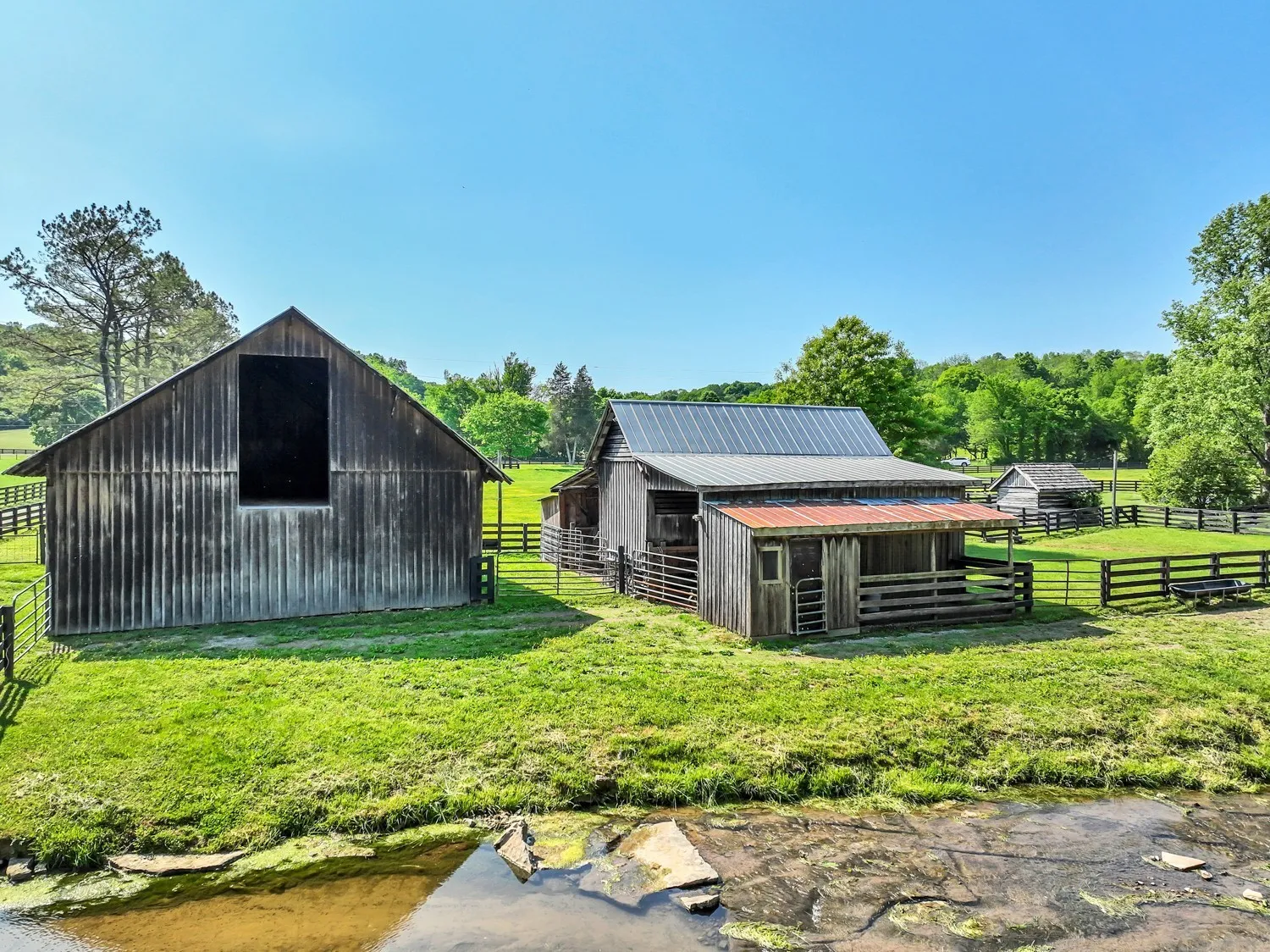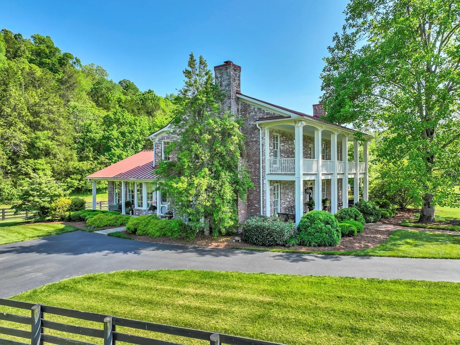 This Colonial Estate on over 24 Acres of land has 4622 SF of living space, including covered porches. Conveniently located minutes from Leipers Fork Village, the home is in excellent condition with pristine maintenance evident from the southern porches to the 4 board fencing and barns. The main level features a master bedroom, a huge eat-in kitchen, formal dining, and sitting areas, and stunning views from every window. Upstairs, three more bedrooms and a large finished storage room are available. The property boasts sweeping views of Williamson County countryside, with Leipers Creek and a spring-fed creek running through it. This unique opportunity offers everything one could ask for in a country estate.
