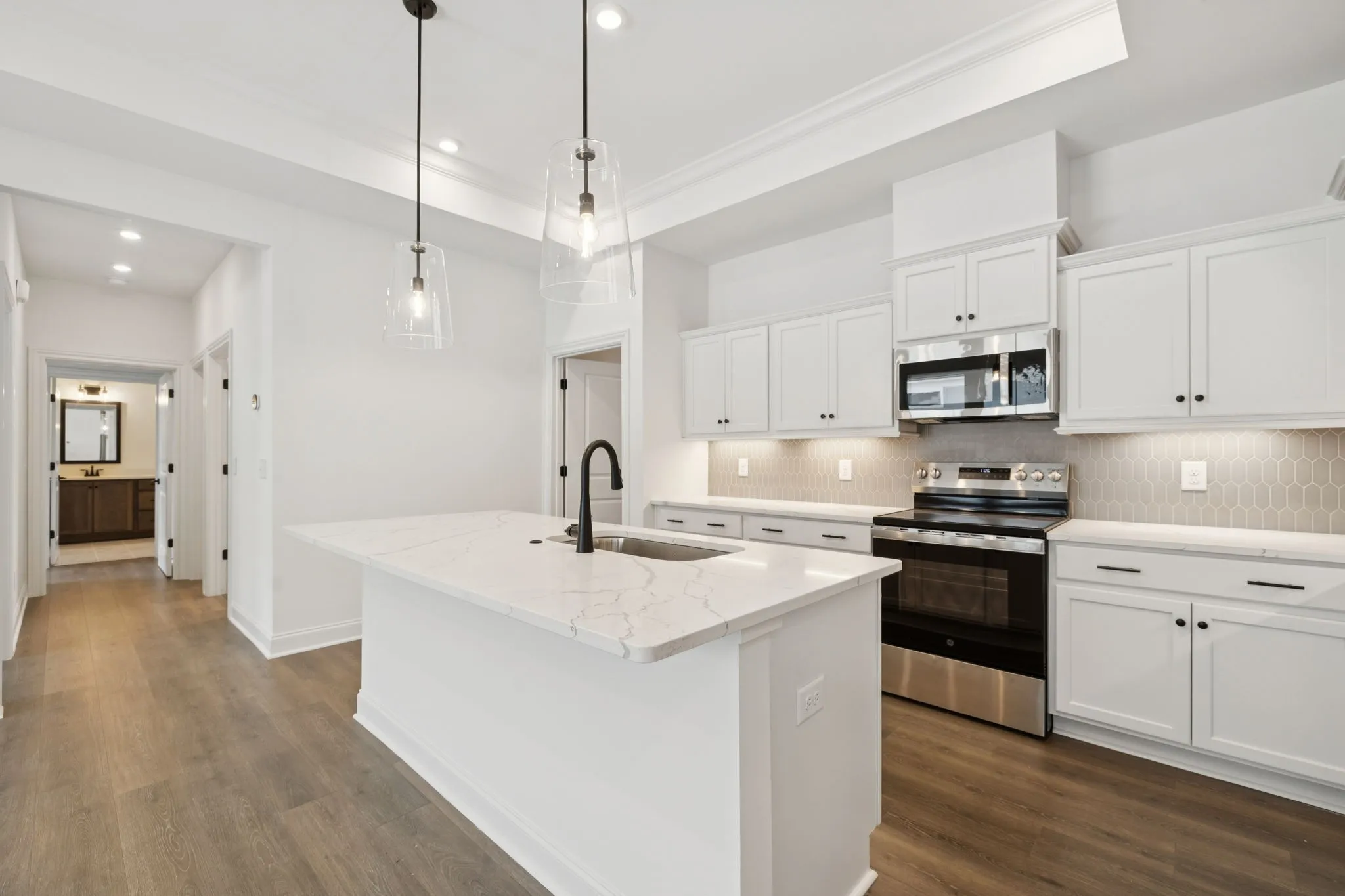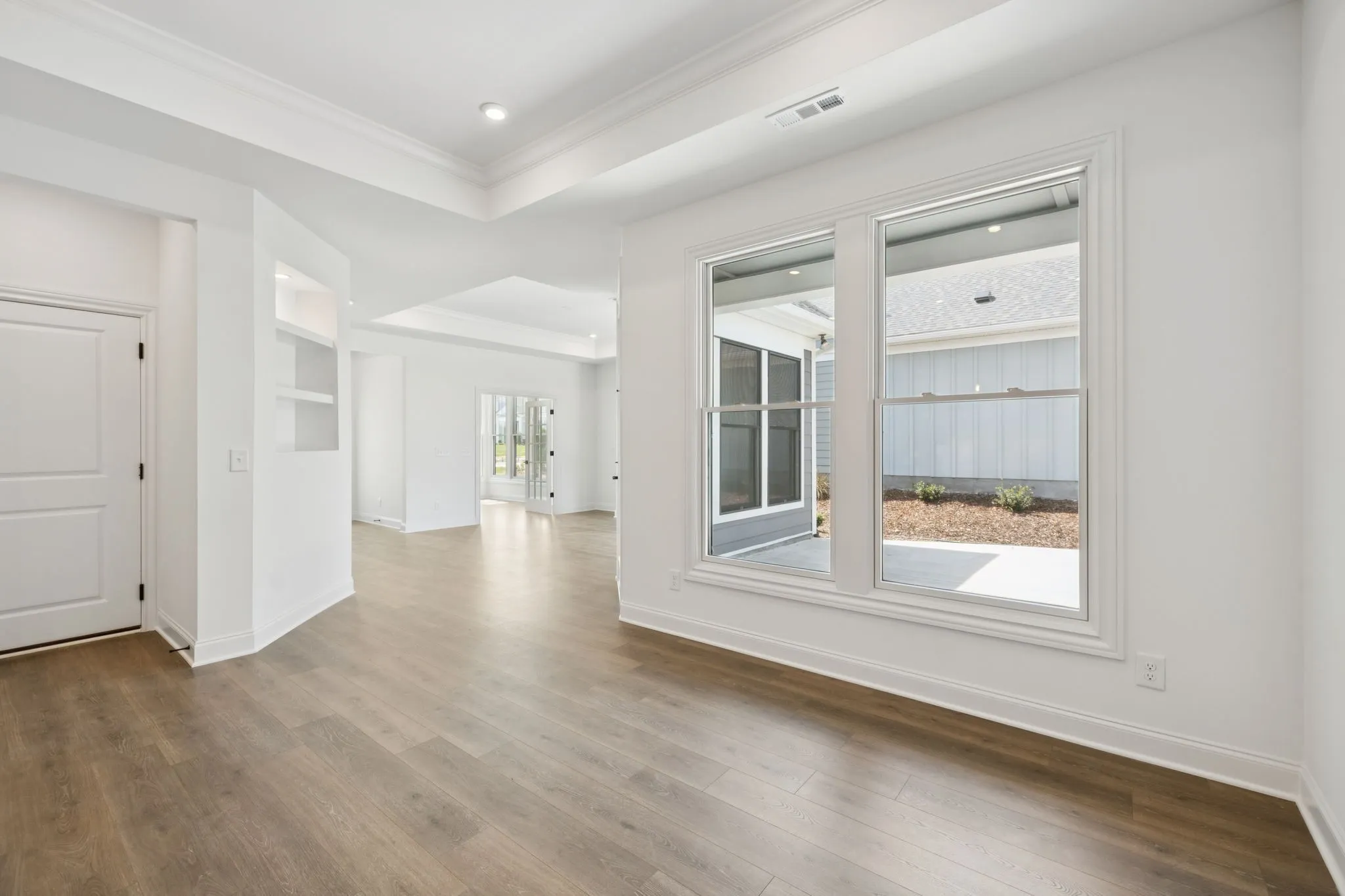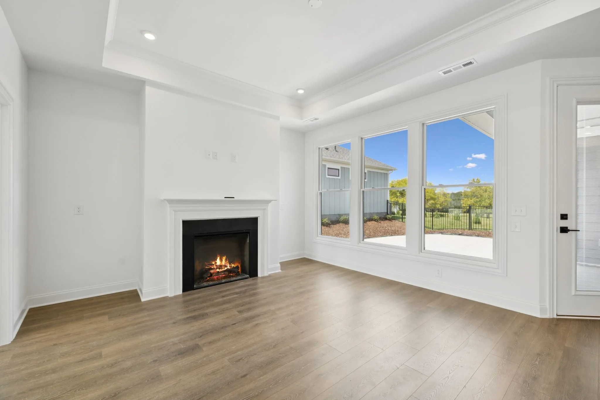 Nearly every room frames views of your private courtyard, your own outdoor sanctuary perfect for morning coffee, evening wine, or quiet relaxation. The home backs to open green space, offering exceptional privacy, peaceful Tennessee scenery, and no rear neighbors — a rare find in new construction.