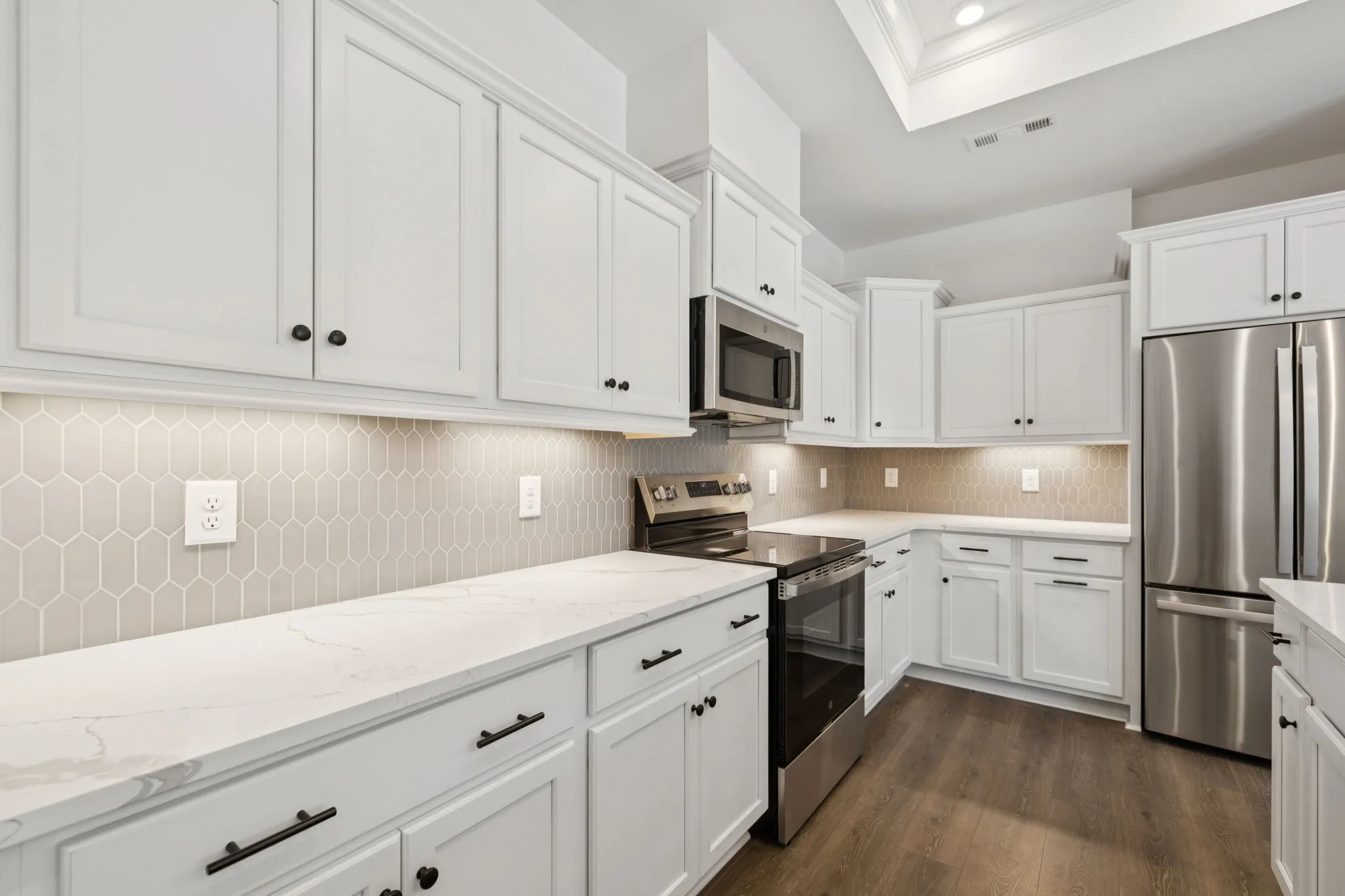 This single-story ranch features a bright Four Seasons Room, a thoughtfully designed open layout, and an Owner’s Suite privately positioned at the rear of the home — creating a true personal retreat. The spa-inspired Owner’s Bath includes a zero-step shower, delivering comfort, style, and long-term livability.