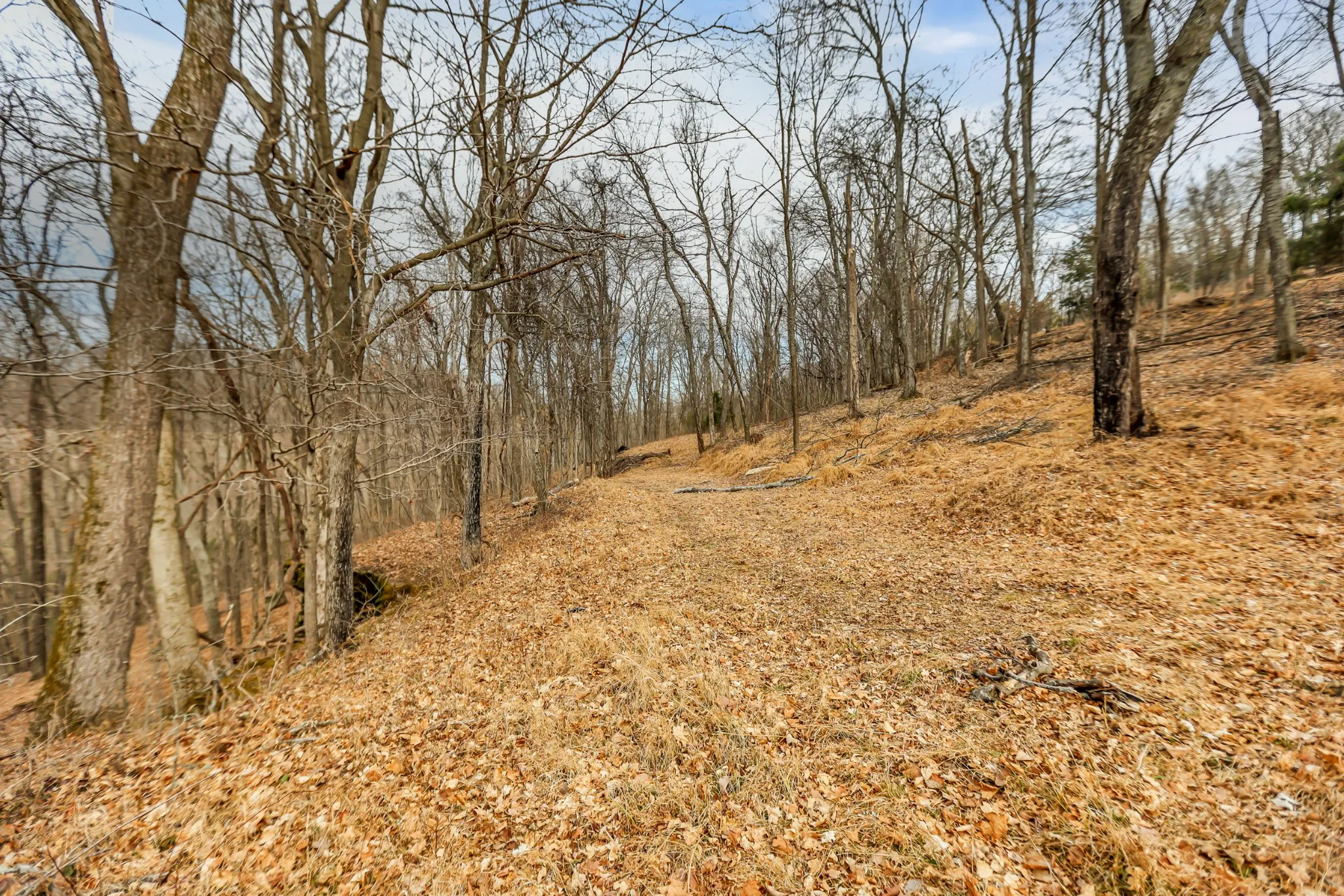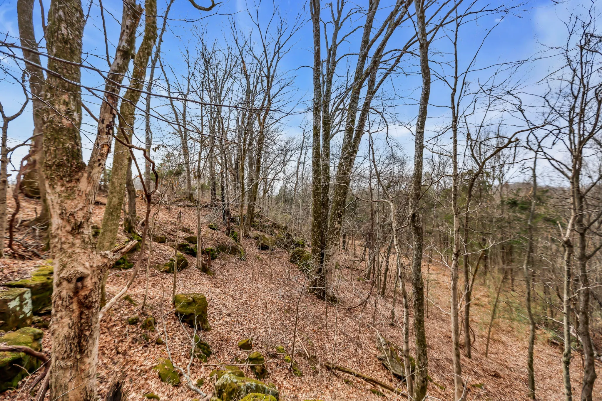 - Lot Features: Level, Wooded, Rolling Slope