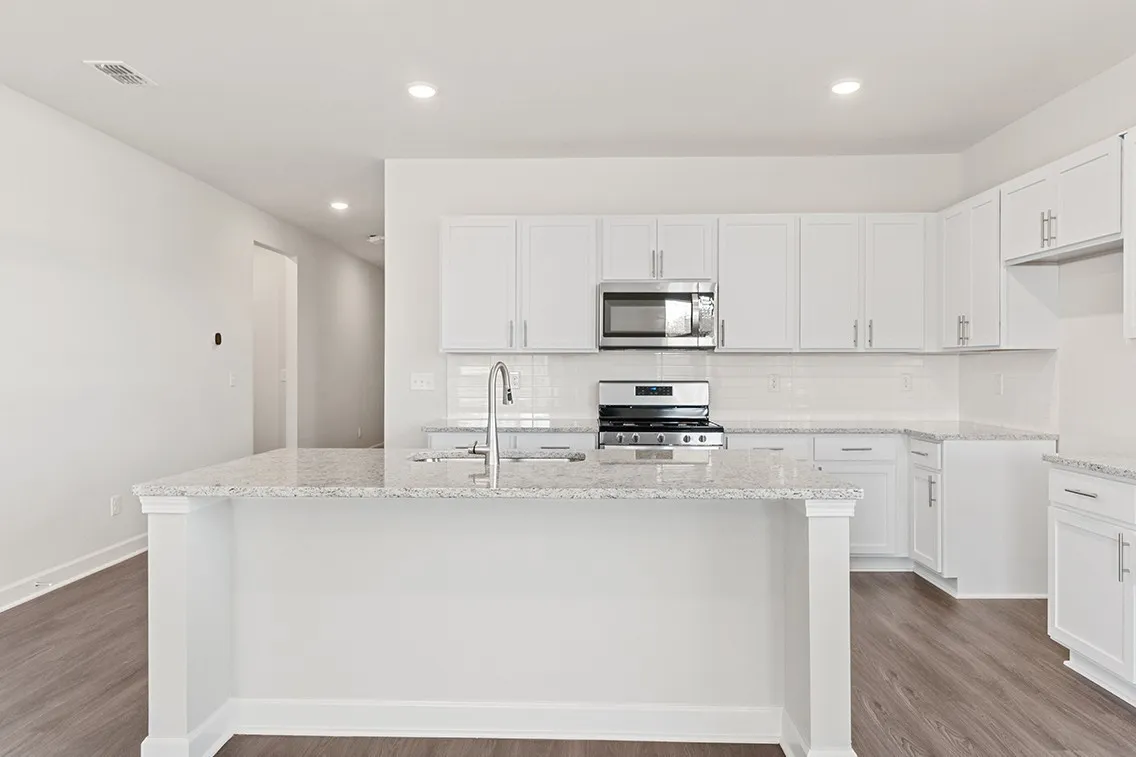 This single-story home at Barton Hills in Spring Hill, TN is full of thoughtful details and easy flow. The spacious corner lot sits just across from the community amenities, with treeline views across the street for added privacy and charm. Inside, an open-concept layout centers around an extended kitchen with abundant counterspace—perfect for everything from weeknight dinners to weekend hosting. The kitchen flows easily into the dining area and great room, which opens to a covered patio for seamless indoor-outdoor living.