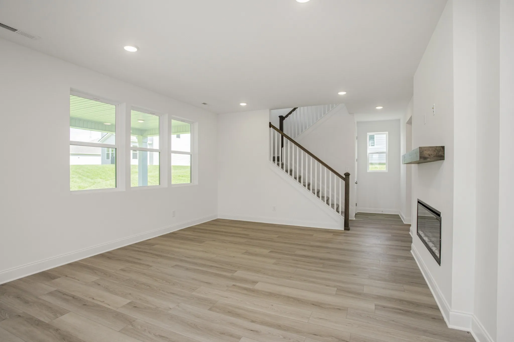 A home thoughtfully crafted to support the natural rhythm of everyday living. The main floor serves as the central hub for connection, comfort, and productivity. The gourmet kitchen, complete with stainless steel appliances and a generous island, opens seamlessly to the inviting keeping room with its modern fireplace. From there, the layout extends into the expanded sunroom, showcasing serene views of the private, tree‑lined backyard.