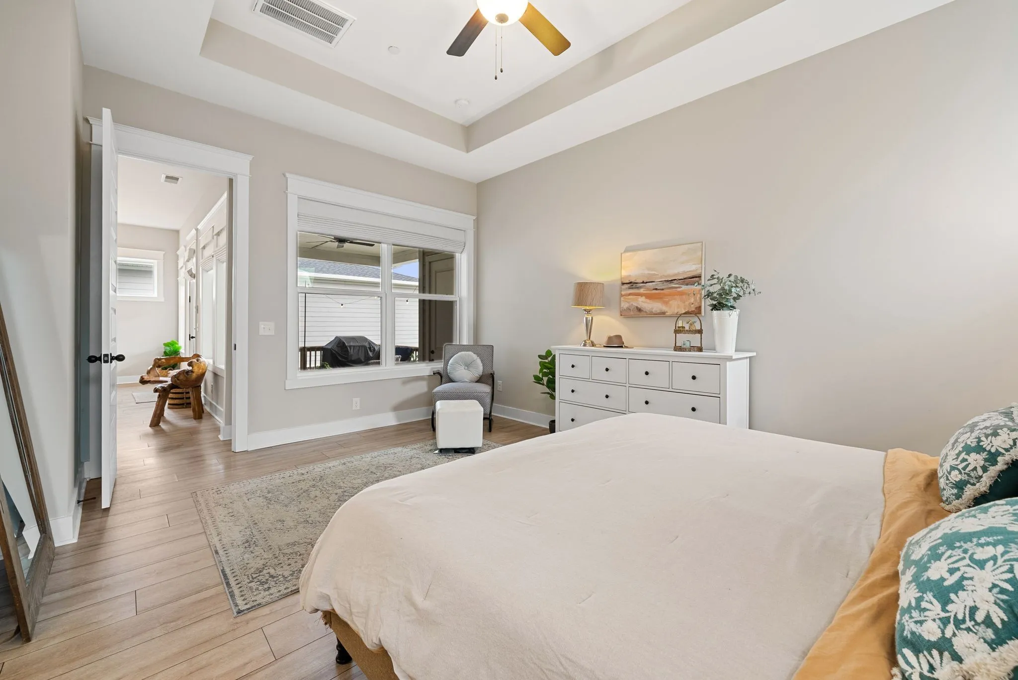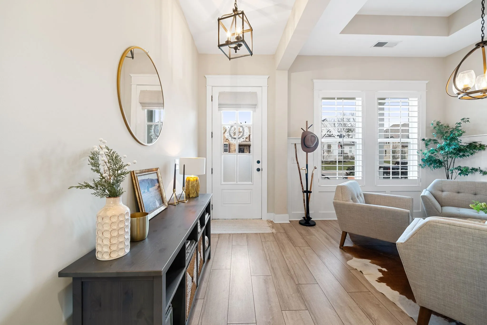 One-story living in Nolensville’s highly sought-after Annecy master-planned community, The open-concept floor plan features a spacious kitchen, dining, and family room centered around a gas fireplace, complemented by 10-foot ceilings and 8-foot doors throughout. The chef’s kitchen is beautifully appointed with a gas cooktop, double ovens, built-in vent hood, apron-front sink, quartz countertops, and soft-close cabinetry. Additional interior highlights include a luxurious owner’s bath with an oversized shower, tray ceilings in the primary bedroom and study, and Craftsman-style wainscoting. Upgrades throughout the home include custom Roman shades, plantation shutters, upgraded Shaw flooring, a tankless water heater, an added fourth bedroom, and a beautifully updated laundry room featuring new cabinetry, hardwood countertops, and designer wallpaper. Outdoor living is enhanced by an extended covered back porch and a newly added black aluminum fence, perfect for everyday enjoyment and entertaining. Located in a vibrant community with lots of neighborhood events and fantastic amenities including neighborhood lawn space, a walking trail that connects to miles of scenic trails, a community pool, and a playground. This home offers a strong investment opportunity with no rental restrictions and short-term rental eligibility.