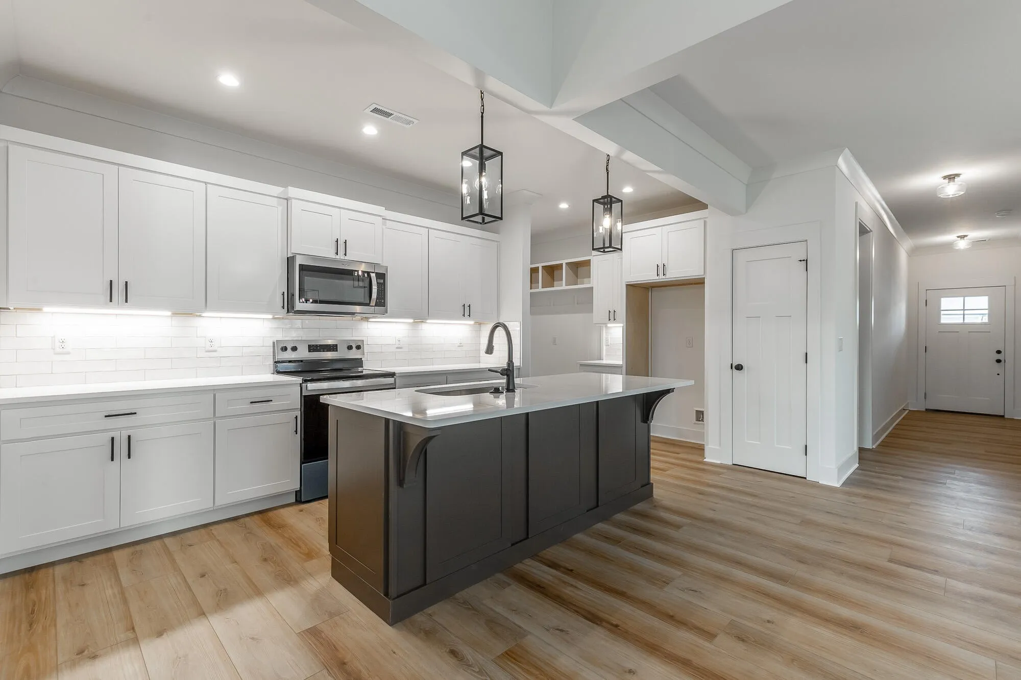 NEW CONSTRUCTION – 5 Bedroom/ 3 bath home . Located off Battlefied Pkwy in THE GROVE subdivision. This gorgeous home features large open concept great room, kitchen and dining. Great room has vaulted ceiling and gas log fireplace. The kitchen has beautiful wood and white cabinetry, quartz counters, tile backsplash, under cabinet lighting and stainless appliances. The primary suite is located at back of lower level – along with large spa like primary bath. The entire main floor is luxury vinyl plank flooring. There is also another bedroom and full bath on the main level along with a built in drop zone. Upstairs you will find two large bedrooms, another full bath and large bonus room that could be 5th bedroom. The home has covered back and good sized two car garage. All this in subdivision with community pool, pond and walking trails and zoned for Heritage schools. Preferred lender incentive is being offered on this home.