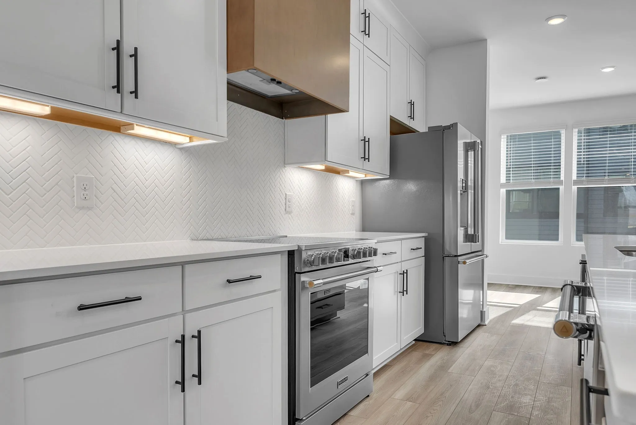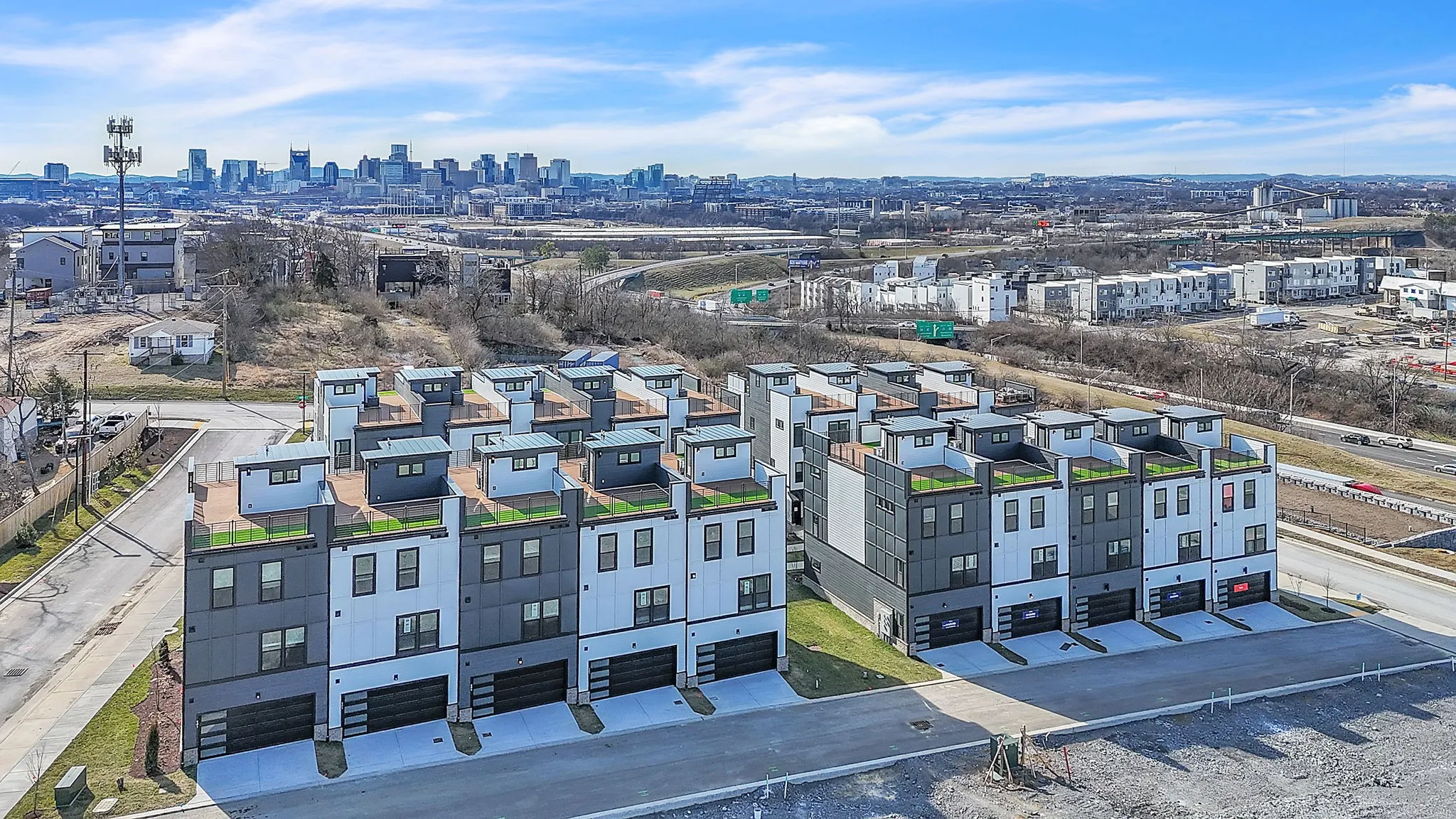 This stunning, brand-new four-bedroom townhome (or three-bedroom plus home office) offers the space, style, and flexibility today’s buyers are looking for. The second level is an entertainer’s dream. Anchored by an oversized quartz island, a gourmet kitchen with designer finishes, expansive dining space framed by large windows, and a spacious living area with a sleek modern fireplace. Hard-surface LVP flooring runs throughout the home and stair treads, paired with designer tile baths, stylish quartz countertops, wood shelving in closets, and elevated finishes at every turn. But the true showstopper? The expansive rooftop deck with breathtaking Nashville skyline views. Whether you’re hosting friends before a Titans game, enjoying sunset cocktails, or taking in the sparkling city lights at night, this rooftop terrace delivers the ultimate Nashville lifestyle experience.