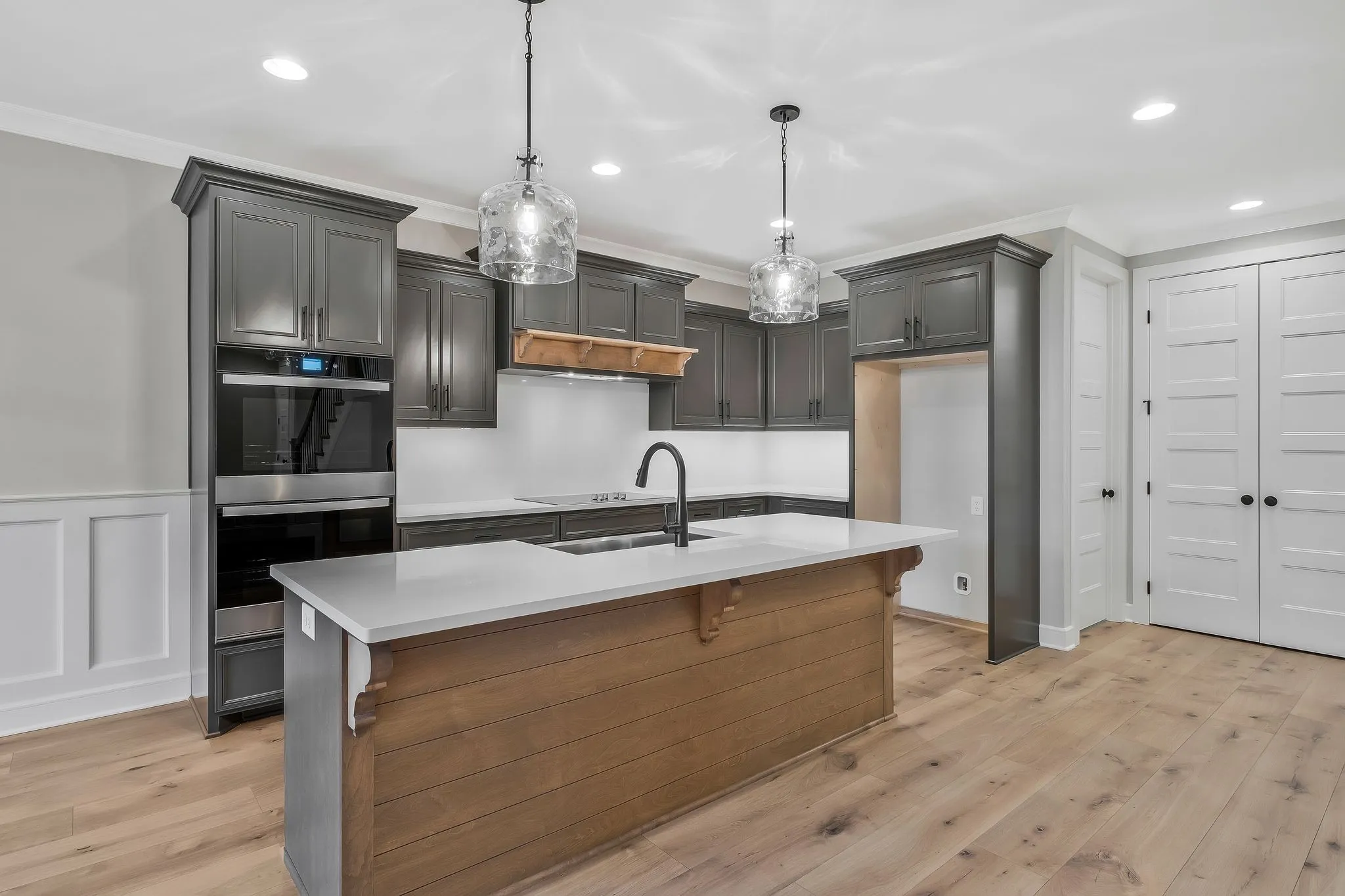 This beautiful home offers the perfect blend of style, space, and functionality. The spacious eat-in kitchen is designed for both everyday living and entertaining, featuring a large island, double ovens, cooktop, stainless steel appliances, solid surface countertops, and a generous pantry. Detailed trimwork throughout the home adds timeless character and charm.