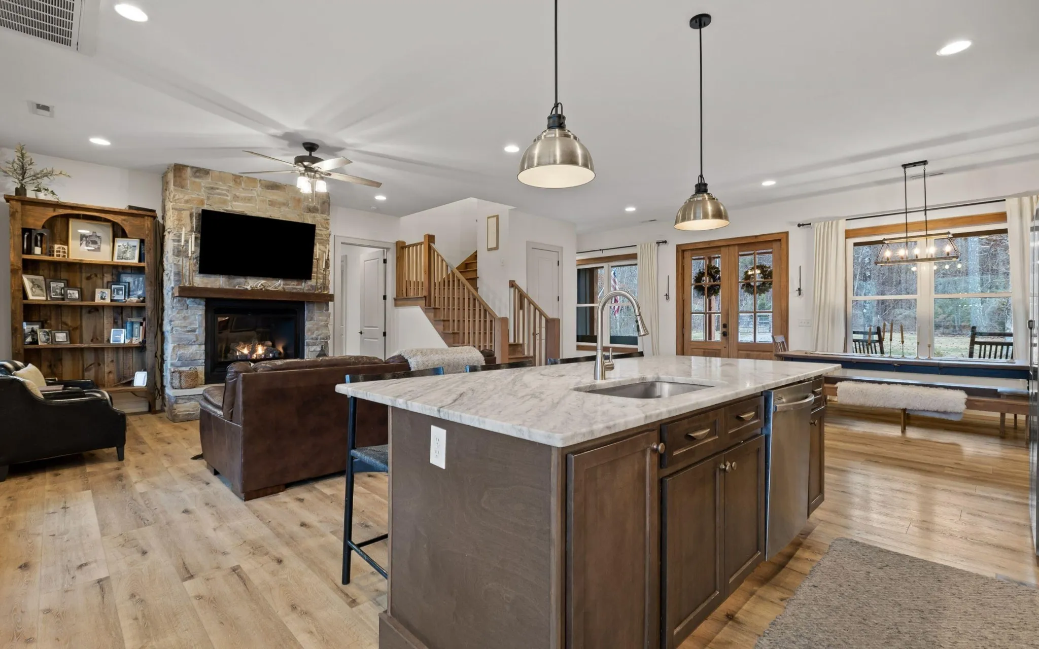 WATCH VIDEO: https://youtu.be/2KHnl3p95d8 – This Is It! Modern farmhouse retreat on 10+/- ACRES with remarkable mountain VIEWS. Built in 2022, welcome home to 4 bedrooms, 5 bathrooms, daylight basement…20 minutes from downtown Chattanooga! Spacious front porch with tongue-and-groove ceiling and solid wood doors welcomes you inside. Open-concept layout adorned with 10′ ceilings, premium flooring, and rustic solid wood stairs. Kitchen designed to impress with an island, custom cabinetry, stainless steel appliances, Taj Mahal leathered quartzite countertops, custom concrete backsplash, gas range, and walk-in pantry! The open yet cozy living room is anchored by a stone gas FIREPLACE and built-ins. MAIN LEVEL PRIMARY suite features its own fireplace, dual custom walk-in closets, double vanities, and tiled shower. Upstairs offers 3 bedrooms with beautiful views, 2 full baths, and a flexible landing ideal for a reading nook or HOME OFFICE. Daylight walkout BASEMENT includes an entertainment room, flex/storage room, spacious laundry room, and bathroom. Utilize the additional 586 square feet of the heated and cooled, partially unfinished WORKSHOP, HOME GYM, and safe room! Relax on the deck, watch the sun set behind the mountains, and pick from the mature fruit trees. Equipped with remote-powered gated entrance, 2-car garage, secondary gated entrance, fenced dog run, and a possible second homesite location. Additional highlights include gravity-fed septic, 500-gallon propane tank, whole home surge protection, tankless water heater, open cell foam insulation, and more. Convenient LOCATION within 15 minutes of Fort Oglethorpe Big Box Stores, including The Home Depot, Lowe’s, and national dining chains. Only 20 minutes to outdoor recreation at Cloudland Canyon State Park. Less than 30 minutes to the McLemore Resort – a stunning golf and luxury destination offering dramatic cliffside views, world-class golf courses, fine dining, spa services, and upscale lodging.