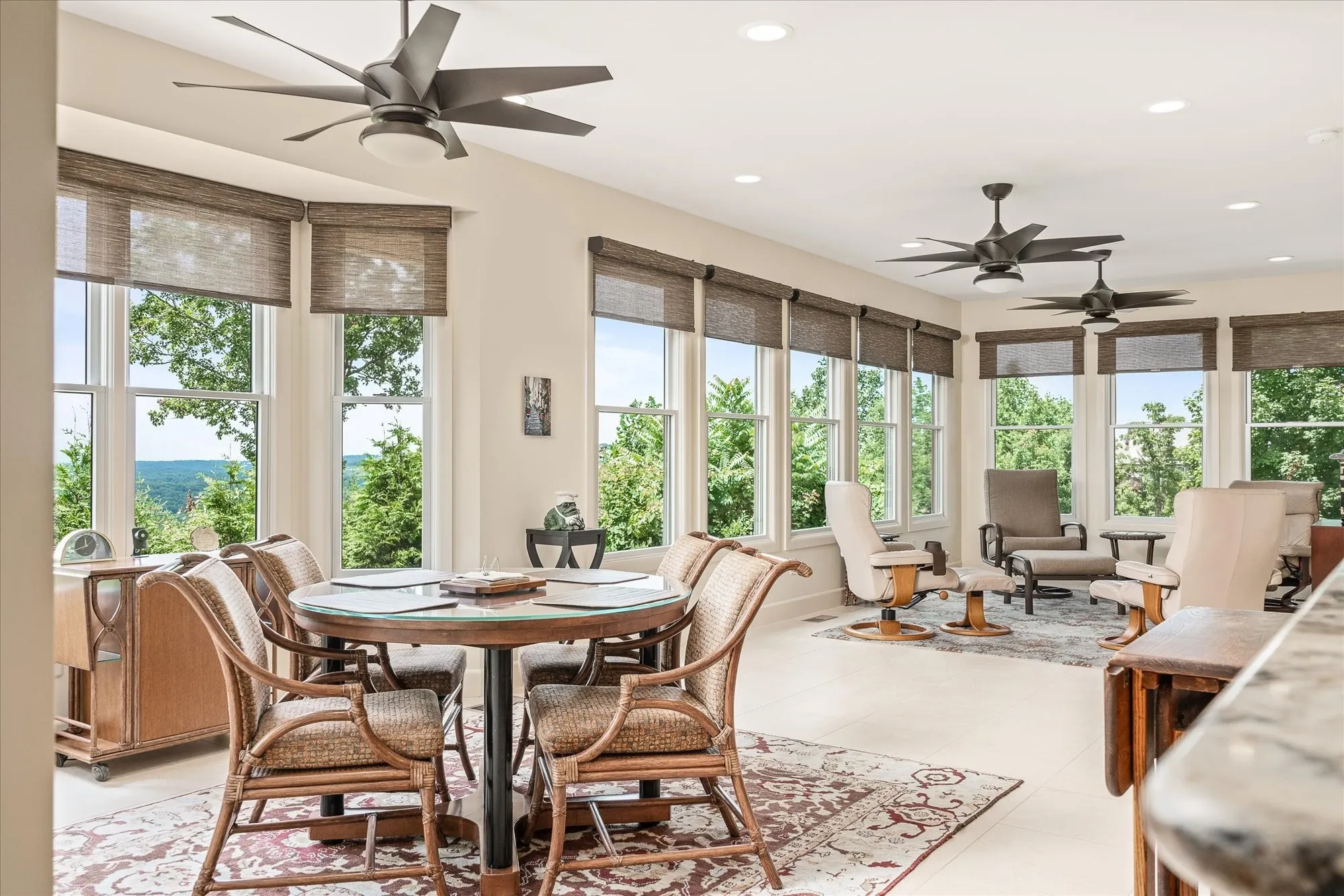 This elegant retreat in The Bluffs was built to celebrate the view—and your life within it. Set on 1.55 private acres, this custom-built retreat offers stunning views, striking architecture, and single-level living with style and substance. The thoughtfully designed layout features 4 bedrooms, 2 full baths, and 2 half baths, with both casual and formal living spaces that flow effortlessly for entertaining or everyday comfort. From the moment you walk in, you’re greeted by soaring ceilings and a wall of windows that invite the outdoors in, while the show-stopping floor-to-ceiling granite fireplace anchors the main living space with timeless style. The gourmet kitchen features an oversized granite island, walk-in pantry, and seamless access to the dining area, sunroom, and screened balcony. Enjoy morning coffee from the screened balcony, work from the private office, and retreat to a serene primary suite complete with dual walk-in closets and a spa-style bathroom. There’s even a large bonus room with its own half bath upstairs for hobbies, guests, or media space. With a 2.5-car garage, oversized laundry, two dedicated office spaces, and high-end finishes throughout, this home was designed for both function and wow factor. Perfectly positioned among mature trees with a sense of peace and privacy—this is elevated living in one of Fairfield Glade’s most sought-after settings. Buyer to verify all information before making an informed offer.