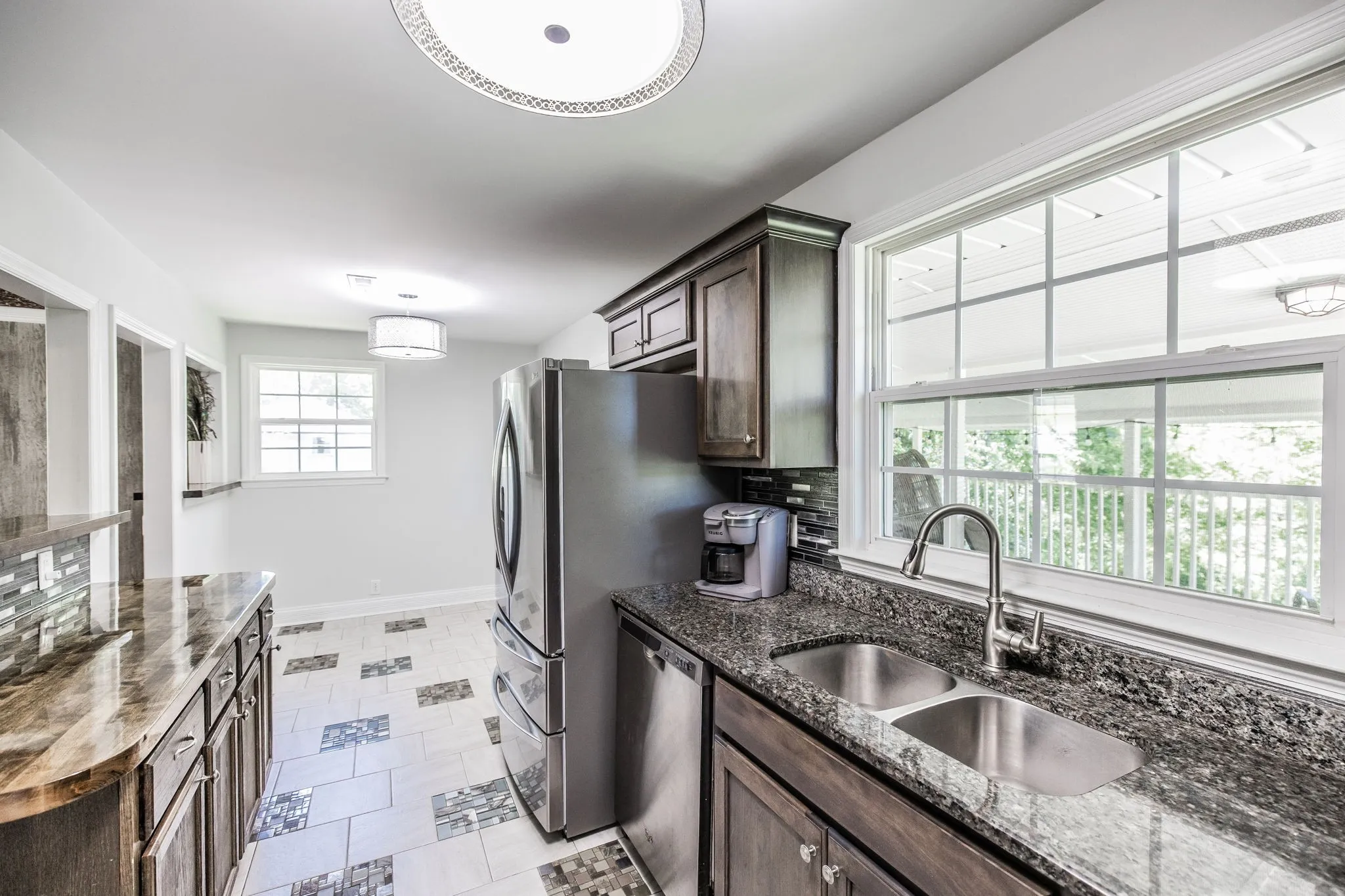 Step inside to discover gleaming engineered hardwood floors and abundant natural light. The main level features three bedrooms, a full bath, and a well-appointed kitchen with stainless steel appliances. The finished lower level provides additional living space with a second full kitchen and walk-out access, perfect for extended family, in-law suite, rental income, or flexible living arrangements.