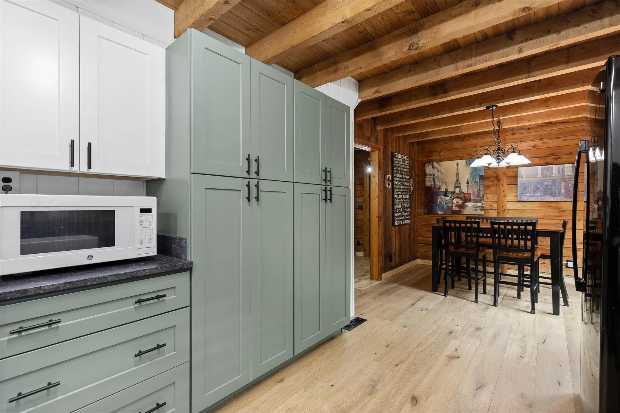 From its post-and-beam construction and vaulted ceilings to the natural stone accents and expansive back deck, every detail speaks to craftsmanship and care. Inside, the open-concept living area features exposed beams, a stand-alone wood stove with stone backing, and a fully updated kitchen with leathered granite countertops and soft-close cabinetry. Four spacious bedrooms and three bathrooms—including accessible features and private en-suite options—provide flexible living arrangements for family and guests.