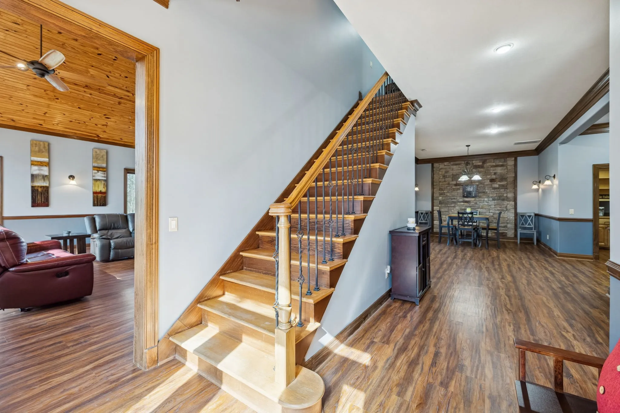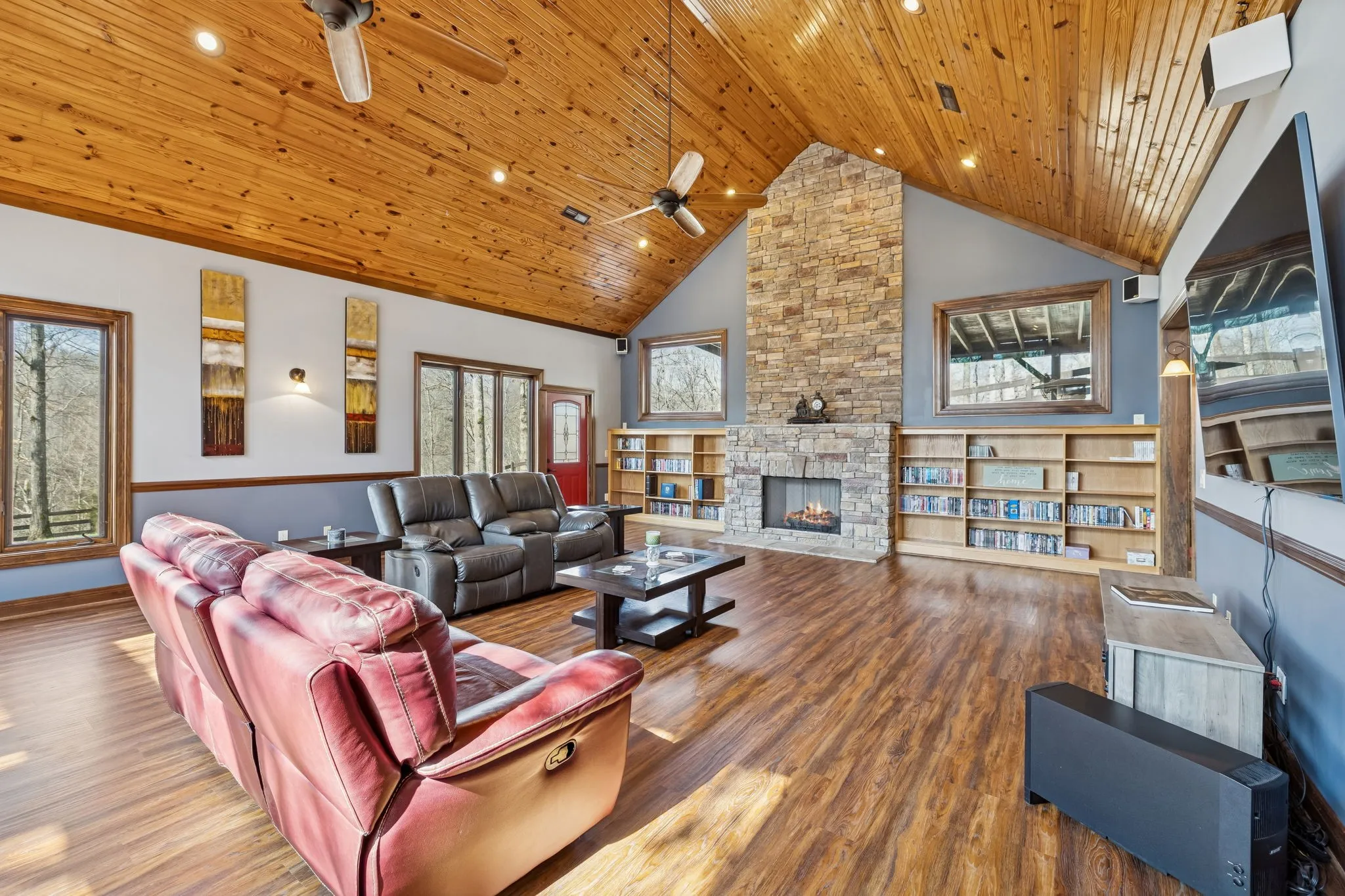 “One-of-a-Kind” Custom Hilltop Hideaway – 3,980 SF | 4 Bedrooms welcome you to a truly exceptional custom-built retreat – tucked away on a scenic and secluded 4.28-acre hilltop setting, yet conveniently located just minutes from Hwy 100. Designed with comfort, craftsmanship, and energy efficiency in mind, this “4,580 sq ft total under-roof” home offers a rare combination of privacy, elegance, and functionality. From the moment you enter, the home makes a statement with a true GREAT Room featuring an 18’ ceiling, stunning pine tongue-and-groove ceiling detail, and a beautiful Majestic Hearth stone fireplace. Ten-foot ceilings throughout the main level and a 12’ ceiling in the Ultimate Primary Suite create a spacious, open feel rarely found in today’s homes. The heart of the home showcases WeberBilt custom solid maple and cherry cabinetry, granite countertops, a Butler’s Pantry, and quality craftsmanship throughout – including solid poplar doors & trim package. Casement insulated windows invite natural light while enhancing energy efficiency. The Ultimate Primary Suite offers a peaceful retreat with generous proportions, pine T&G ceiling, and HUGE closets with abundant storage. Upstairs, matching bedrooms feature Jack ‘n Jill baths, a convenient upper-level laundry room, and a large seasonal storage closet. The main level includes an Office/Guest Suite and a 10’ ceiling with high speed fiber internet for those that work from home. Exercise/Game Room with mirrored wall. Built for long-term efficiency and durability: 2×6 Exterior Wall Construction Icynene Spray Foam & Blown Cellulose Insulation – Dual Fuel HVAC and Two-Zoned Hot Water Heaters “Family-Friends-Pet Friendly” with thoughtful indoor and outdoor living spaces, Covered Patio, Hot Tub, Fenced Side Yard and a 12’ x 40’ Workshop with power – perfect for a workshop or getaway, Concrete Drive & Parking Area, 2-Car Garage – finished, Insulated & roughed in duct ready, complete with sink.