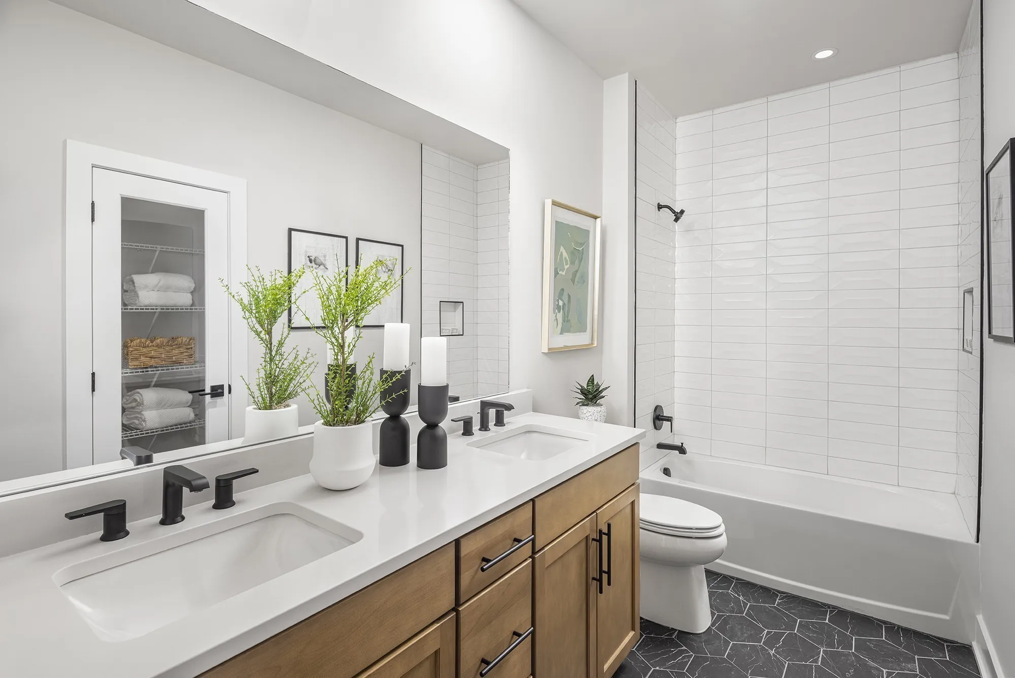 Welcome to Toll Brothers at The Nations. This gorgeous 2-story, 3 bedroom Emmylou loft is located in the heart of Nashville and offers true penthouse living! Situated conveniently near shopping, dining, Stocking 51 and more, this upper loft promises a contemporary oasis with an emphasis on natural light & spacious living. Create your own art gallery as you ascend upstairs to your main floor. Step inside a luxury kitchen boasting an oversized island featuring a stunning quartz countertops. Off the kitchen is a large, open, dining room with a small seating area perfect for a sipping room or library nook. Opposite side, a large great room leads to a sizable covered deck offering the perfect outdoor space to enjoy some fresh air. Adjacent to the deck is a office space offering the perfect spot to work from home or dedicate to your favorite hobby. Upstairs, enjoy your large primary retreat with 2 large walk-in closets & a spa-like bathroom w/double bowl vanity and a walk-in shower with floor to ceiling tile and feature wall. Nestled between all 3 bedrooms is a full-size laundry room complete cabinets, sink and washer/dryer. The hall bath shared by two secondary bedrooms features a double bowl vanity and stunning blue textured tile to the ceiling. The community itself enhances your living experience with amenities such as a dog park, social grilling area, and a communal fire pit, fostering a sense of connection and relaxation among residents.
