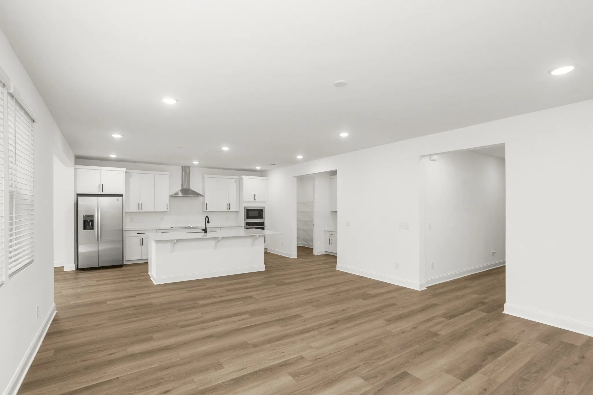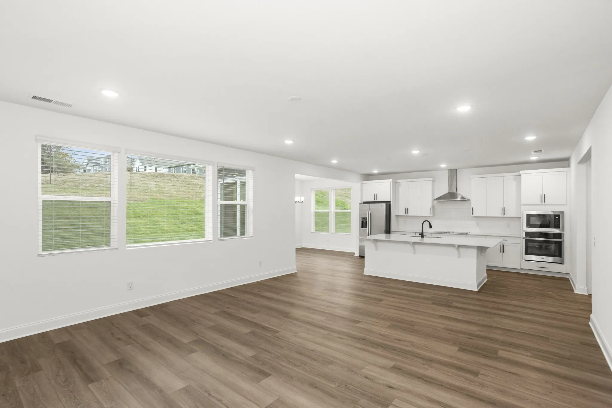 The open‑concept great room is designed for connection — picture soft music playing, a warm fire glowing, and friends and family celebrating the year ahead. The spacious primary suite provides a peaceful escape with a large walk‑in closet and a deluxe bath with double sinks, offering a calming retreat after festive days.