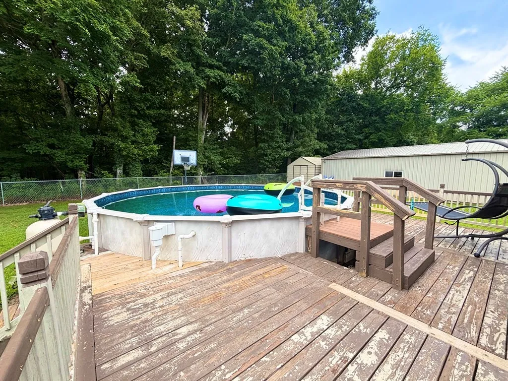 This charming property offers the best of peaceful country living with space, functionality, and comfort. Situated on two spacious lots at 1.11 acre, the 1,728 sq ft home features 4 bedrooms and 1 full bathroom, ideal for families or anyone seeking extra room. Inside, enjoy a modern eat-in kitchen and a cozy yet open living area—perfect for everyday living and entertaining. Step outside to relax or host guests around the above-ground pool with a wraparound deck with a large fenced-in backyard. A detached 2-car garage includes a workshop area, complemented by two generously sized storage sheds, offering ample space for tools, hobbies, or outdoor gear. Whether you’re working from home, tackling weekend projects, gathering with family, or simply soaking in the quiet surroundings, this home checks all the boxes. Don’t miss out on this versatile gem!