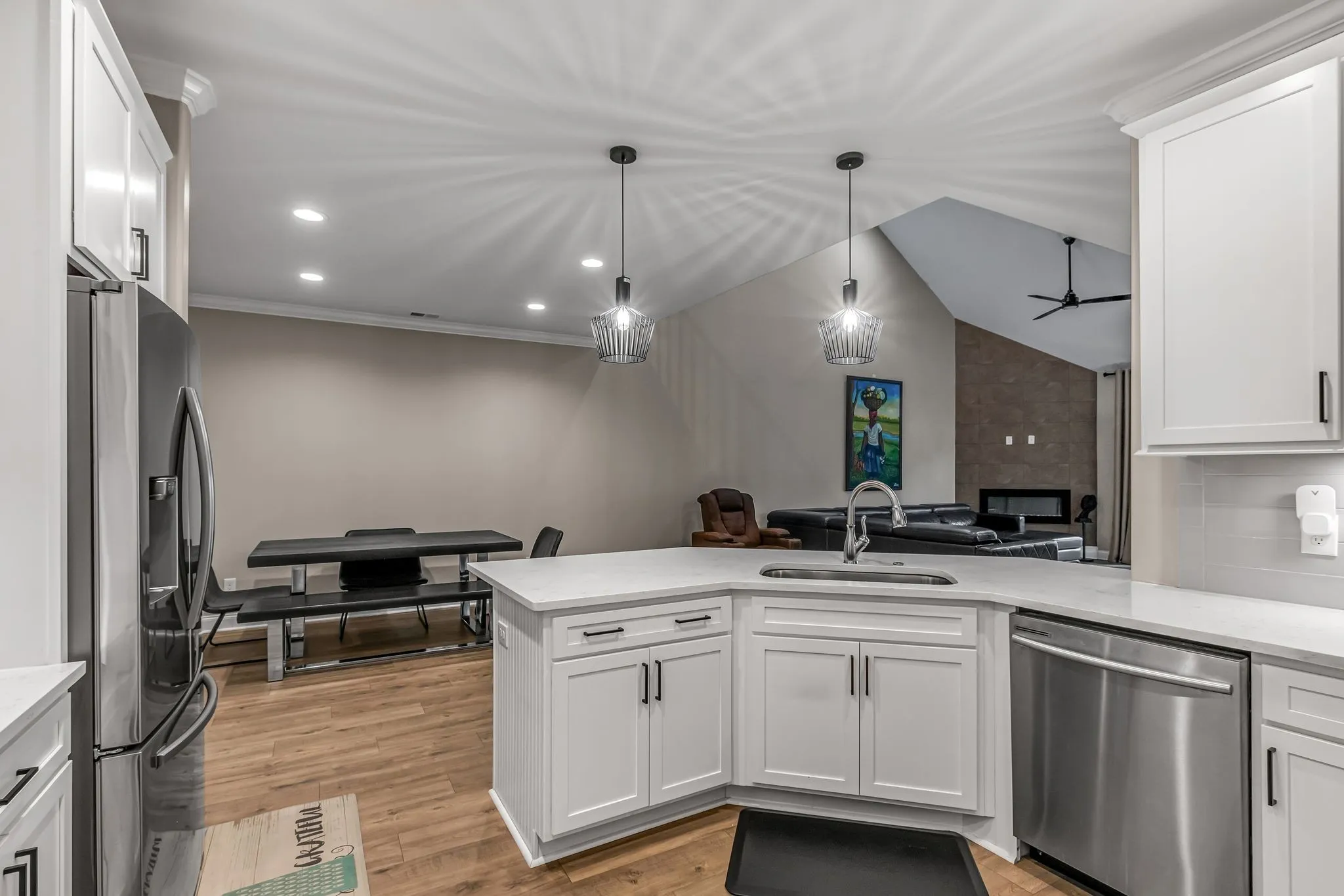 Spacious, Stylish & So Many Upgrades! An amazing $10,000 covered patio upgrade with a privacy fence for outdoor living year-round! One of the most desirable larger floorplans in the community—this stunning 3-bedroom, 2.5-bath home features a versatile flex room (ideal for a 4th bedroom, office, home gym, or craft room) and a huge loft that overlooks the dramatic great room with soaring vaulted ceilings and a sleek modern electric fireplace. Enjoy an open-concept layout that’s perfect for entertaining, with Luxury Vinyl Plank flooring throughout the main living areas, a beautifully updated kitchen with quartz countertops, tile backsplash, and stainless steel appliances. The freshly painted interior adds a bright, clean feel, and the home is Energy Star Certified for efficiency and comfort. The spacious bedrooms all offer walk-in closets, and the luxurious primary suite includes a spa-inspired bath with a freestanding soaking tub and gorgeous tiled shower. Extras include an upgraded lighting package, security system, washer/dryer/fridge included, and a large driveway that easily accommodates 4 additional vehicles. Step outside to your own private oasis! This is the rare combination of space, style, and smart upgrades—don’t miss it!***Seller welcomes offers from Churchill Mortgage Certified Home Buyers—buyers are pre-underwritten and backed by a lender paid $10,000 Seller Guarantee if financing fails. Call Dan Kraus for more information***