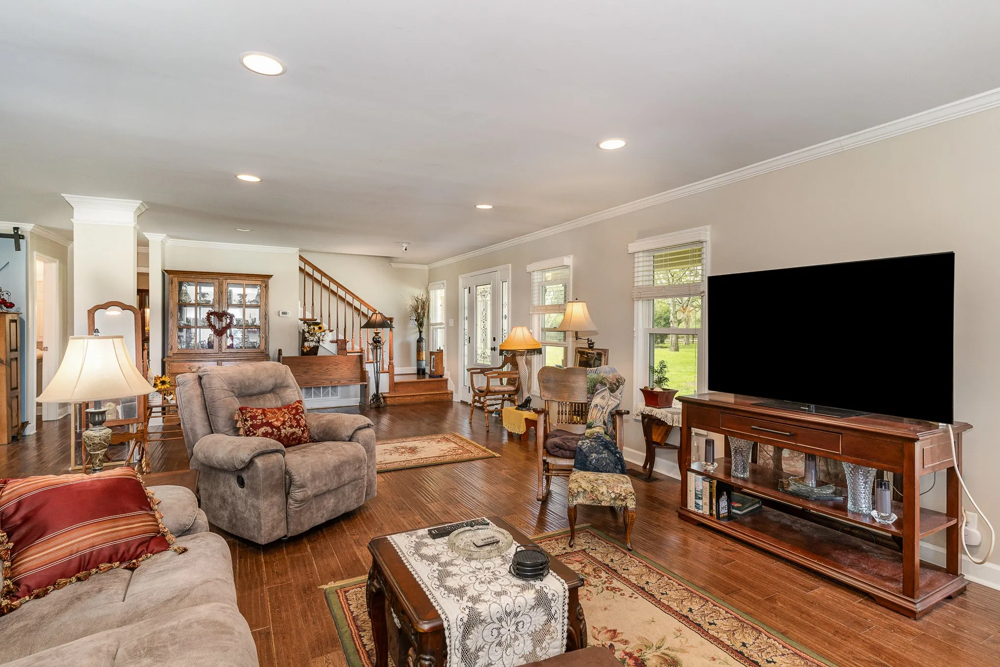 Luxurious home in Murfreesboro with separate building with two rooms and half bath, office, and spacious living areas. Property is fully fenced in with an automated gate, elegant aggregate driveway, and outdoor landscaping that makes you feel like your in a park. Kitchen features huge island, top-notch appliances, tile backsplash, and granite countertops. Great room boasts ample windows and gas fireplace. Main floor offers master bedroom with walk-in closer with built-ins, washer & dryer hook-ups and lavish bath with ceramic tile shower and double showers. Upstairs, there are two bedrooms and two additional rooms to provide flexibility along with an additional laundry room. A perfect blend of comfort and elegance for modern living.