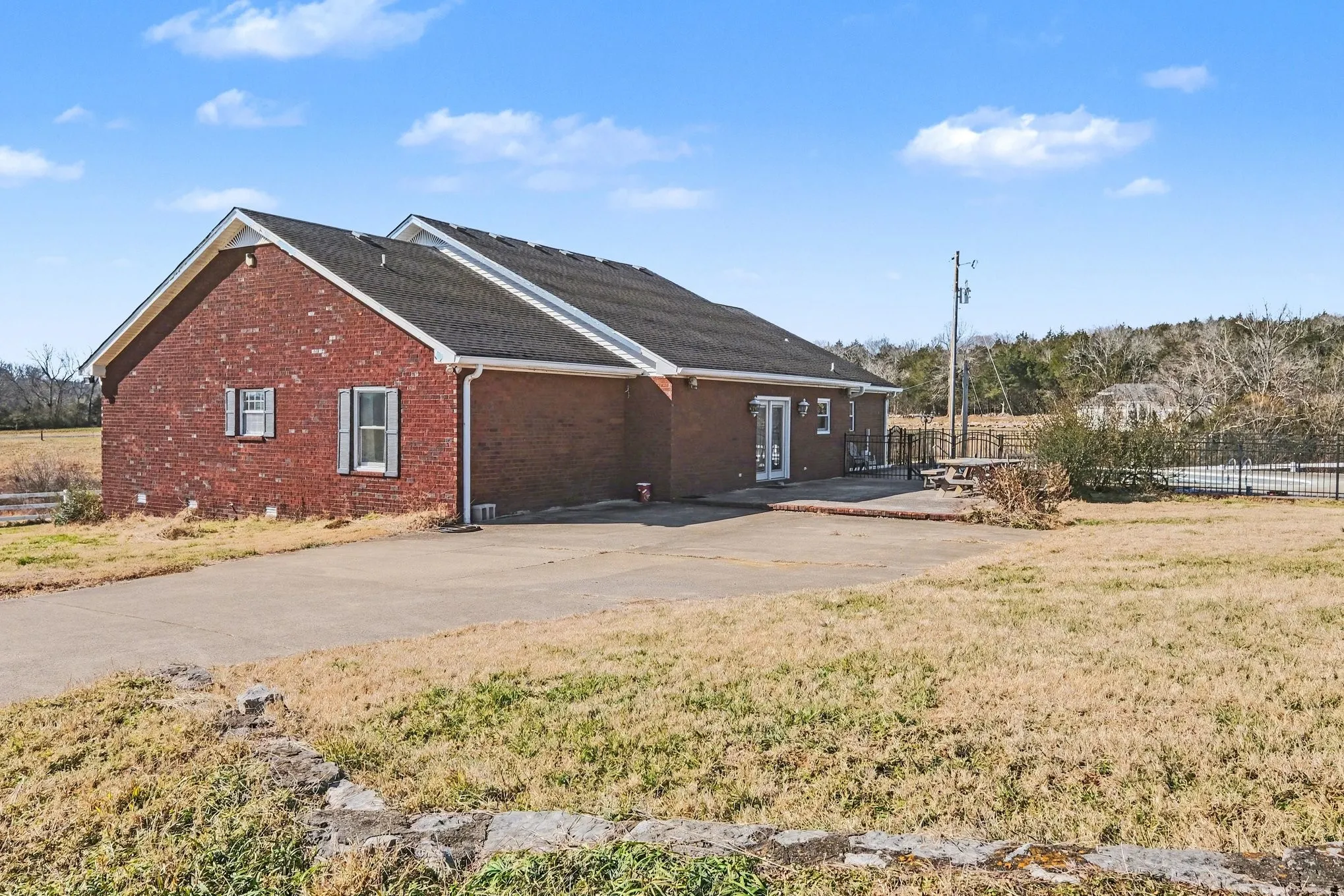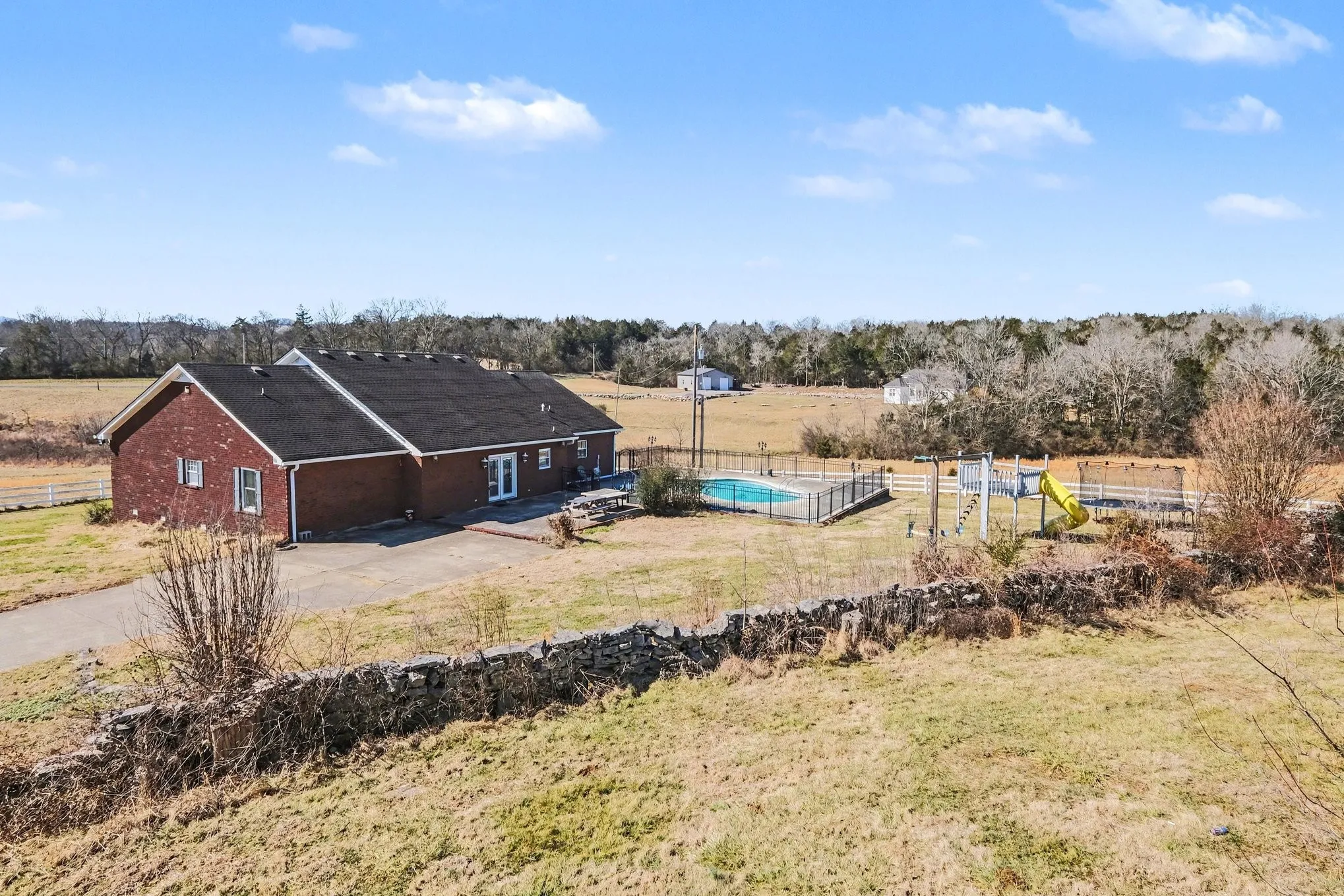 Rancher style all brick, 3 bedroom, and 2 bath home on 21.41 acres of mostly open pasture. This home sits way off the road with a fully concrete, 1/4 mile driveway. This home has a large, extremely open-concept living area, featuring a gas fireplace, and tons of potential to frame out an office, dining room, or even a guest room. The kitchen includes stainless steel appliances, a center island, and a spacious pantry/utility room. Outside you’ll find an In-ground saltwater pool and detached 2-car garage with a large bonus room above, and seasonal pond. The land is fenced along on the back side of the property , but if you choose to, you can fence all of the pasture land in the front field as well. This home has great potential to further increase in value for someone who would like to personalize it with upgrades. You don’t have to do math folks, where else can you find all this for that price? You can’t. It costs nearly a million. There is room here for potential. This is country living at its finest. Just 15 min to I-40, 22 min to Lebanon, and 44 min to BNA. Call for your showing today this won’t last long.