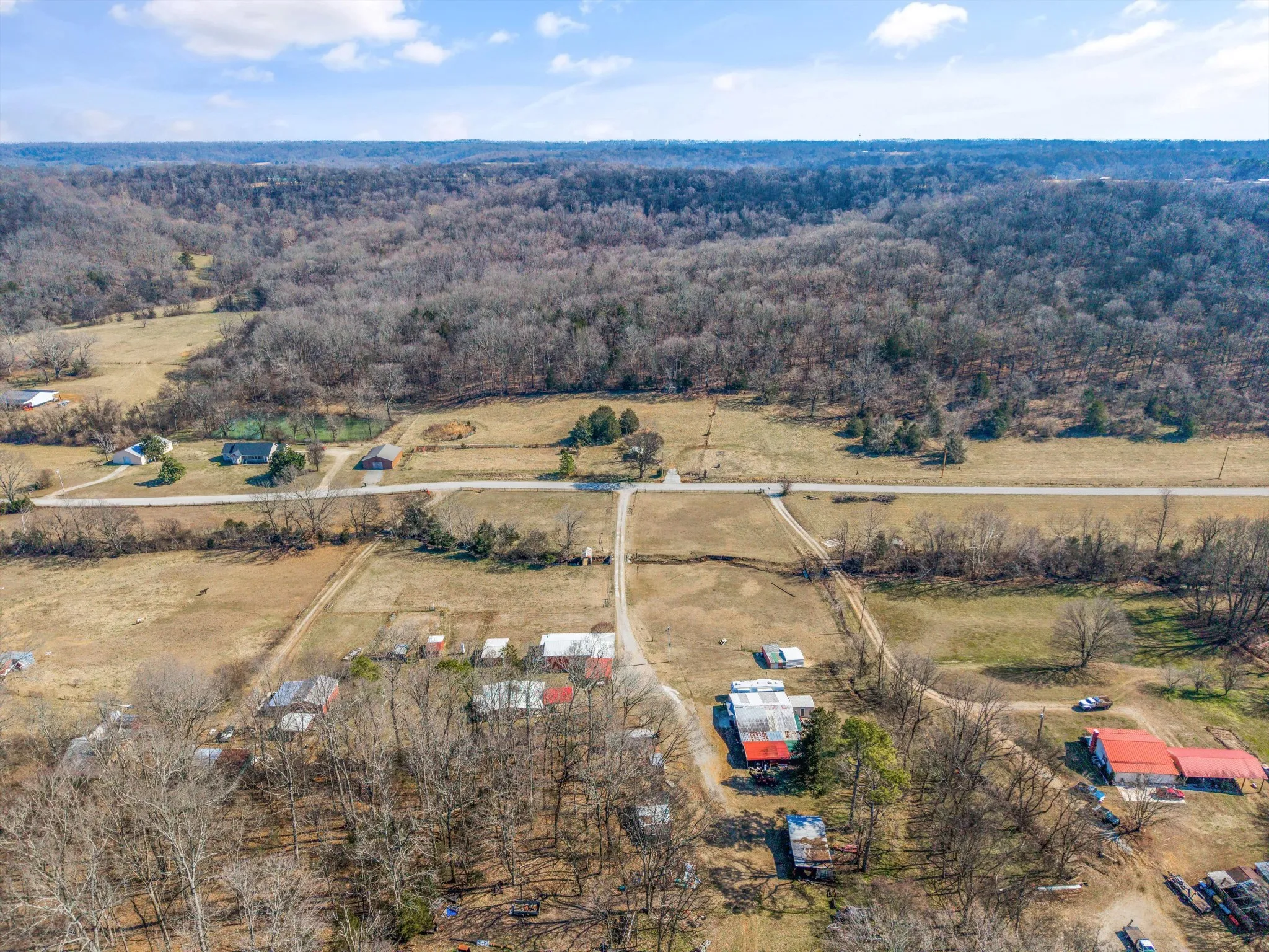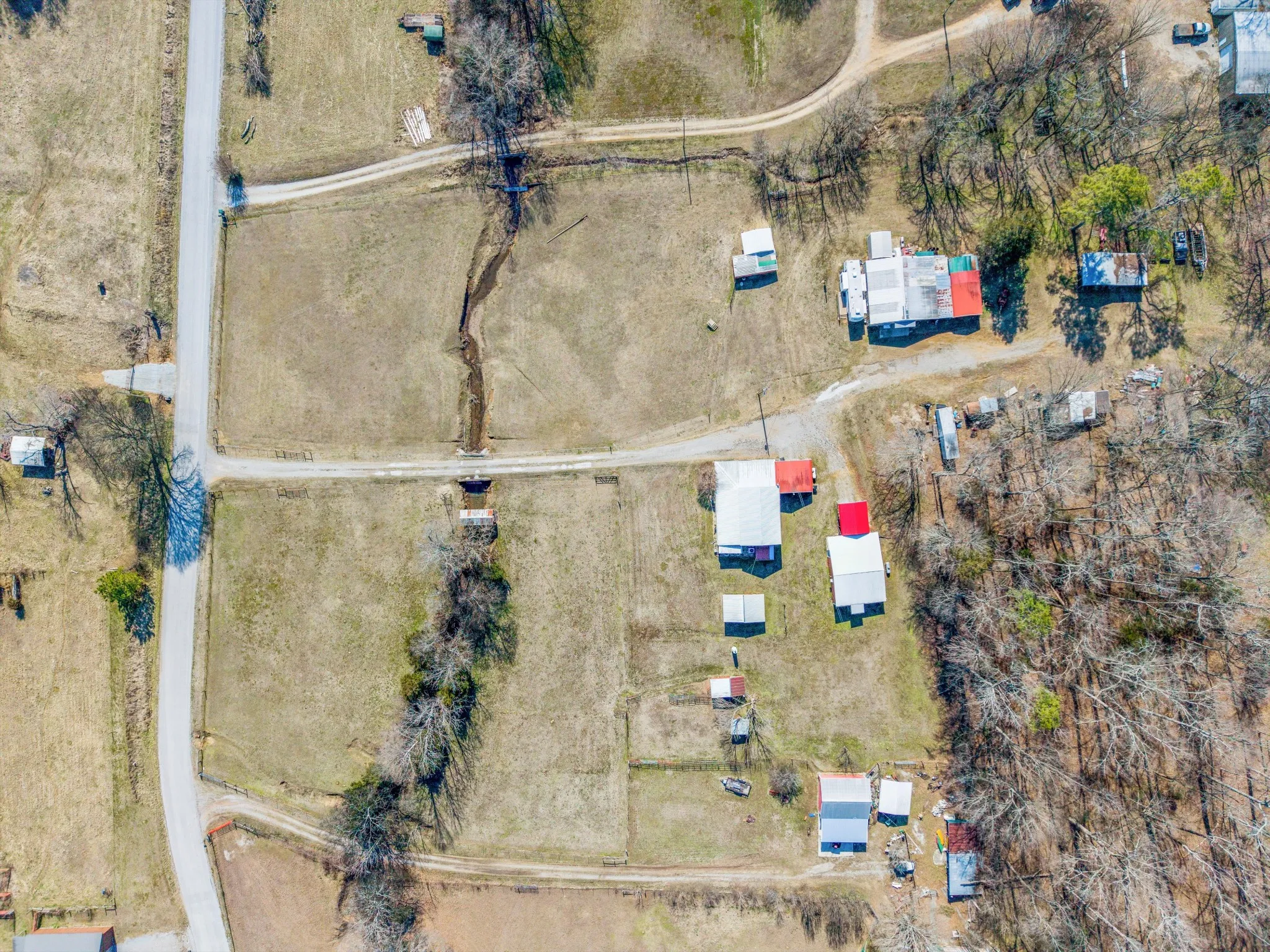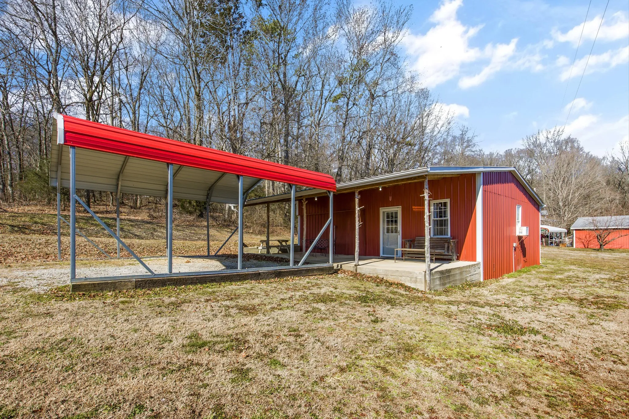 The main home has been thoughtfully upgraded and offers 3 bedrooms and 2 full baths with a desirable open floor plan, perfect for everyday living and entertaining. Major systems including the HVAC and water heater were updated in 2019, providing comfort and efficiency. Natural light flows through the living spaces, and the layout offers both functionality and warmth. Adding exceptional value is a second home on the property, approximately 900 sq ft, featuring 2 bedrooms and 1 full bath. This space is ideal as a mother-in-law suite, guest house, or rental opportunity, offering privacy while remaining conveniently close to the main residence. Additional improvements include multiple carports and two storage sheds, providing ample room for equipment, tools, and farm essentials. With a blend of usable pasture, wooded privacy, and water features, this property offers endless possibilities—whether you envision a working mini-farm, multigenerational living, or a quiet country retreat.