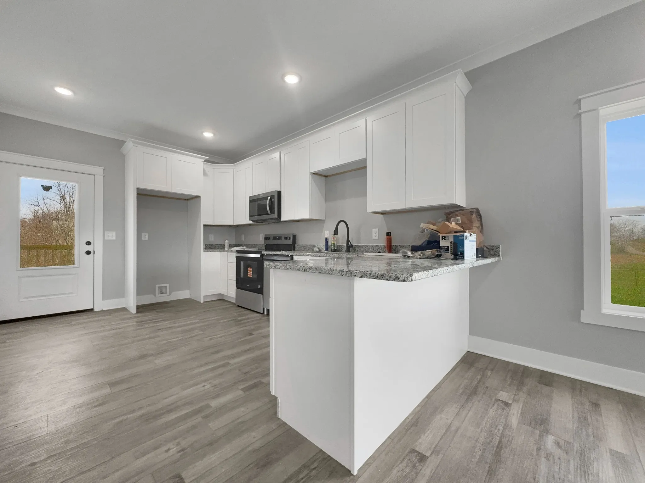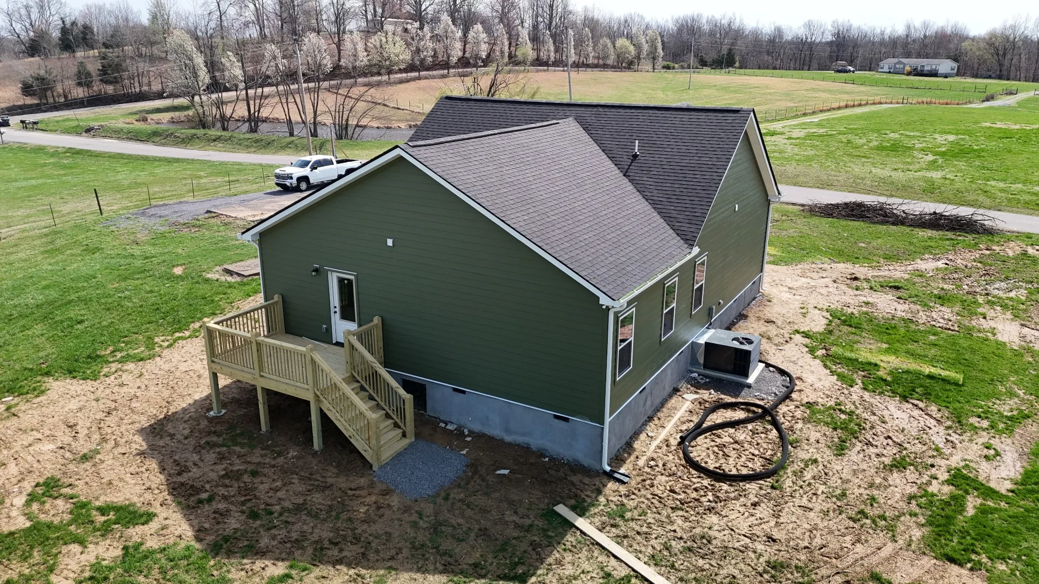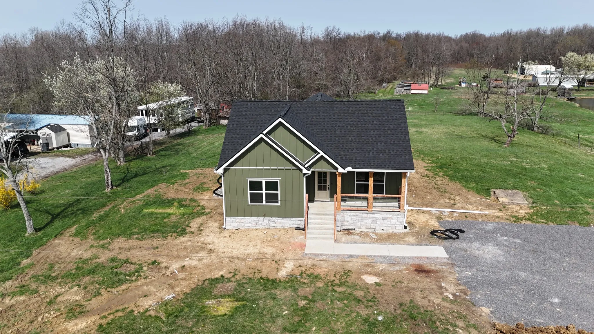 This charming 1,450 sq. ft. new construction home offers 3 bedrooms and 2 full bathrooms on 1.22 acres. Featuring an open floor plan, the home boasts granite countertops, hybrid custom cabinetry, a spacious kitchen bar, and durable vinyl plank flooring throughout. The spacious primary bedroom offers a private bathroom complete with a double vanity sink for added comfort and convenience, while the additional bedrooms provide flexibility for family, guests, or a home office. Relax on the inviting front porch or unwind on the back deck—perfect for morning coffee or peaceful evenings. A 12×12 concrete pad adds extra potential for storage, a workshop, or future expansion. Don’t miss your opportunity to own this move-in ready home with a quiet country feel. Schedule your private showing today! Preferred Lender, Ted Witkus with First Farmers Bank offering 1% toward closing costs.