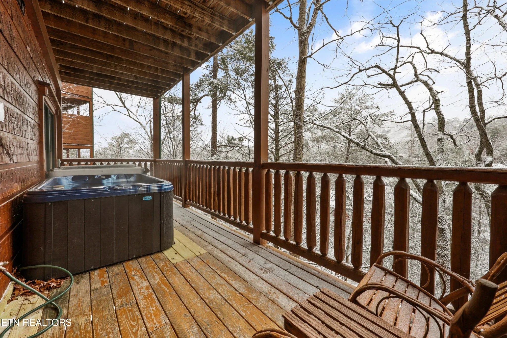 The exterior is just as impressive, with three covered expansive decks providing peaceful wooded surroundings and mountain ambiance. One deck features a private hot tub which is a must-have amenity for maximizing short-term rental bookings and guest satisfaction.