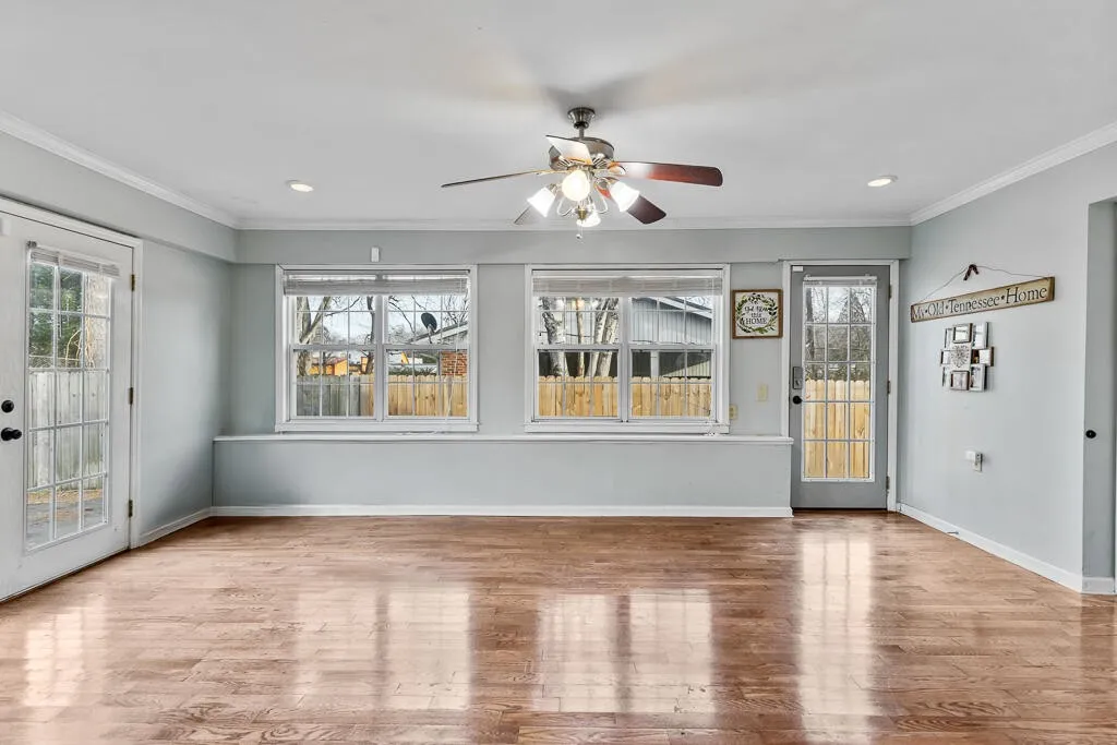 LOCATION, LOCATION, LOCATION!! This full-brick, single-level ranch truly checks every box. Offering 1,917 square feet, 3 bedrooms, and 2 updated baths, the layout is both spacious and versatile with a formal living room, formal dining room, and a cozy den with fireplace—ideal for entertaining or everyday comfort. The oversized kitchen is a standout, featuring an island, abundant cabinetry and storage, newly installed butcher block countertops, and stainless steel appliances. A large sunroom/bonus space adds flexibility, while the oversized laundry room provides exceptional functionality. Hardwood floors, oversized double-hung windows, and custom cabinetry add warmth and quality throughout.
