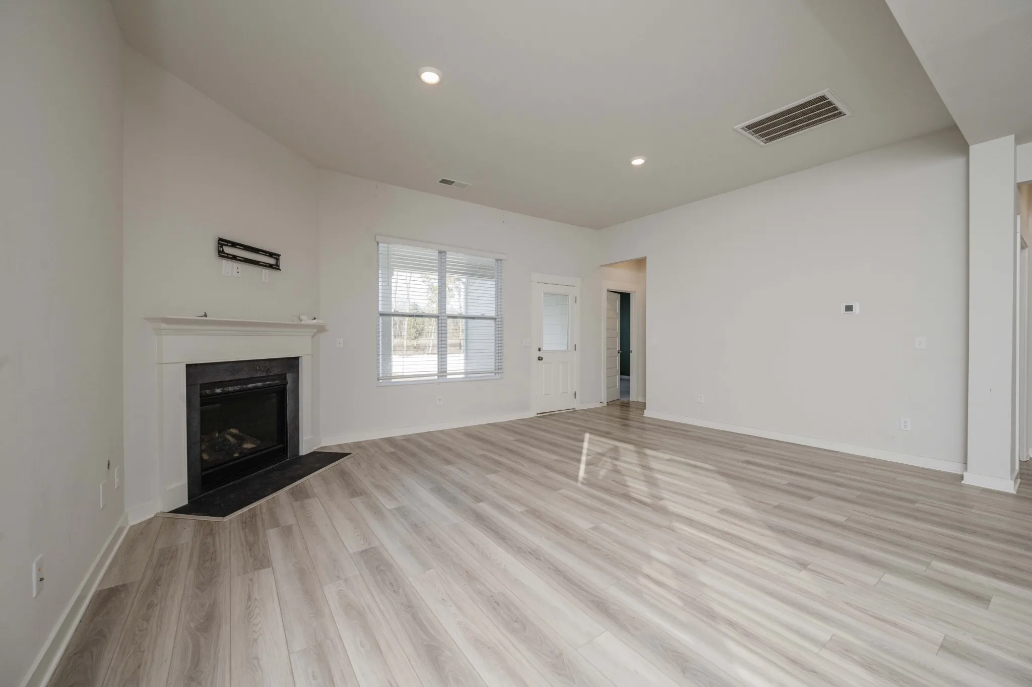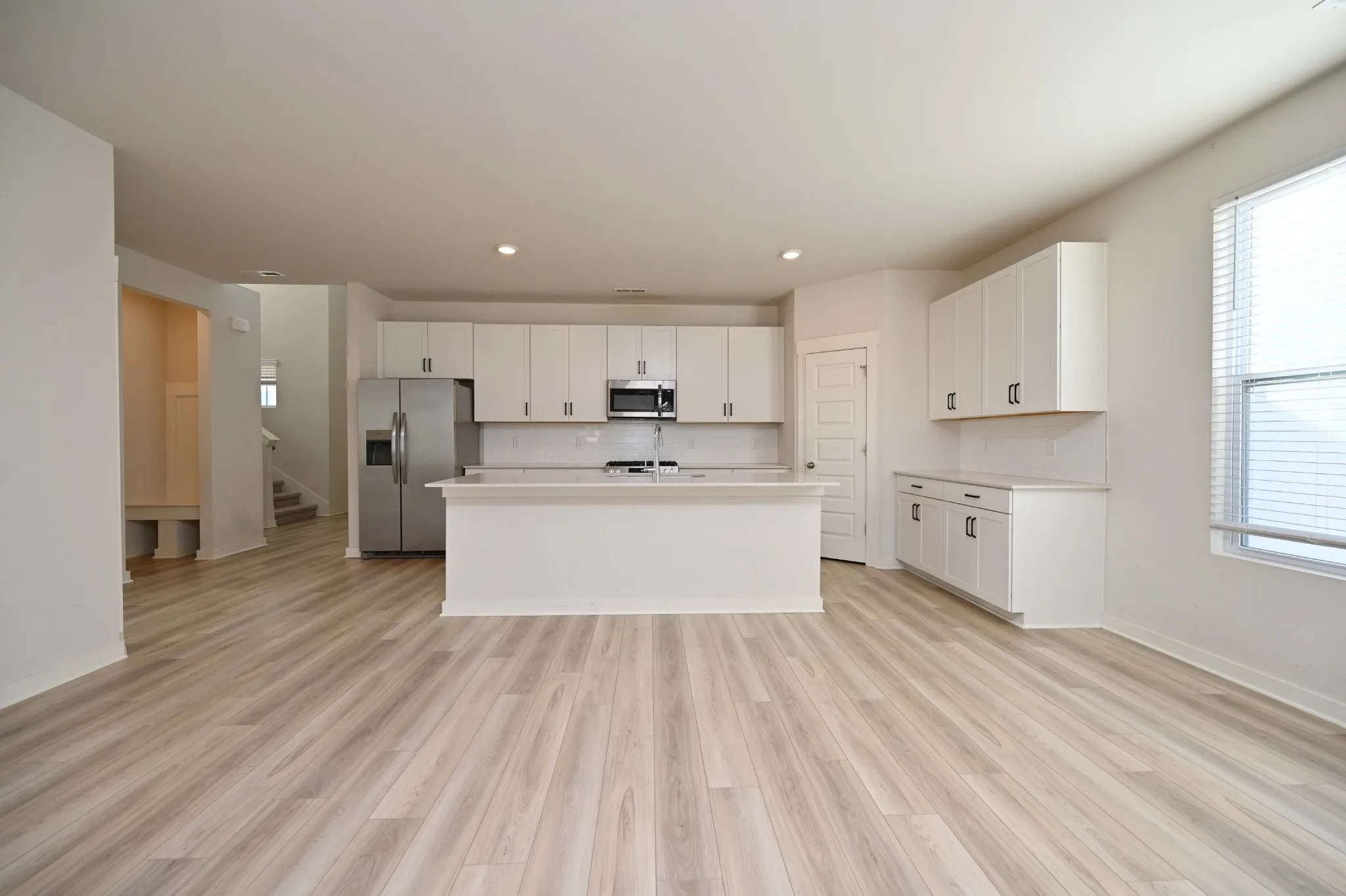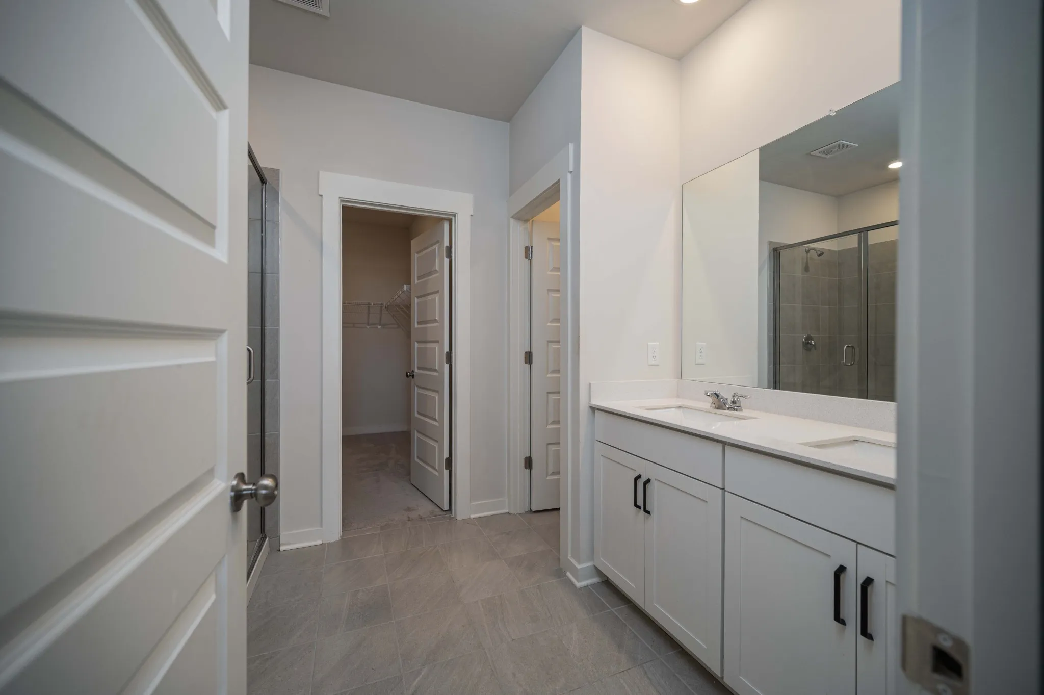 The open-concept kitchen and living room serve as the heart of the home, ideal for entertaining and everyday living. The kitchen offers abundant cabinetry, generous counter space, and seamless flow into the living area filled with natural light and gathering space. The main level primary suite features a spa-like bathroom complete with double vanity sinks, a glass walk-in shower, and an oversized walk-in closet.