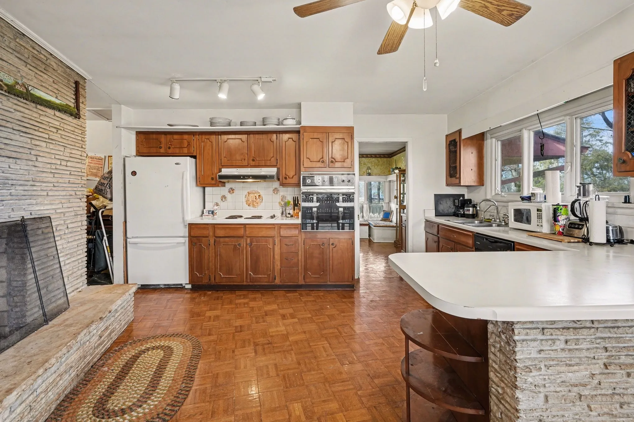 Architectural charm and endless potential await at 5572 Hwy 76 East! 3 Additional flex rooms that can be used at bedrooms. This stone-built beauty sits on a gorgeous lot and features a sunken living room with a fireplace, plus a second fireplace in the kitchen and downstairs. The layout is fantastic, offering spacious rooms and great flow. Enjoy newer windows, a brand-new furnace, and timeless craftsmanship throughout. With its striking exterior and solid bones, this home is a rare opportunity — update it and create an absolute stunner in a picturesque Springfield setting!
