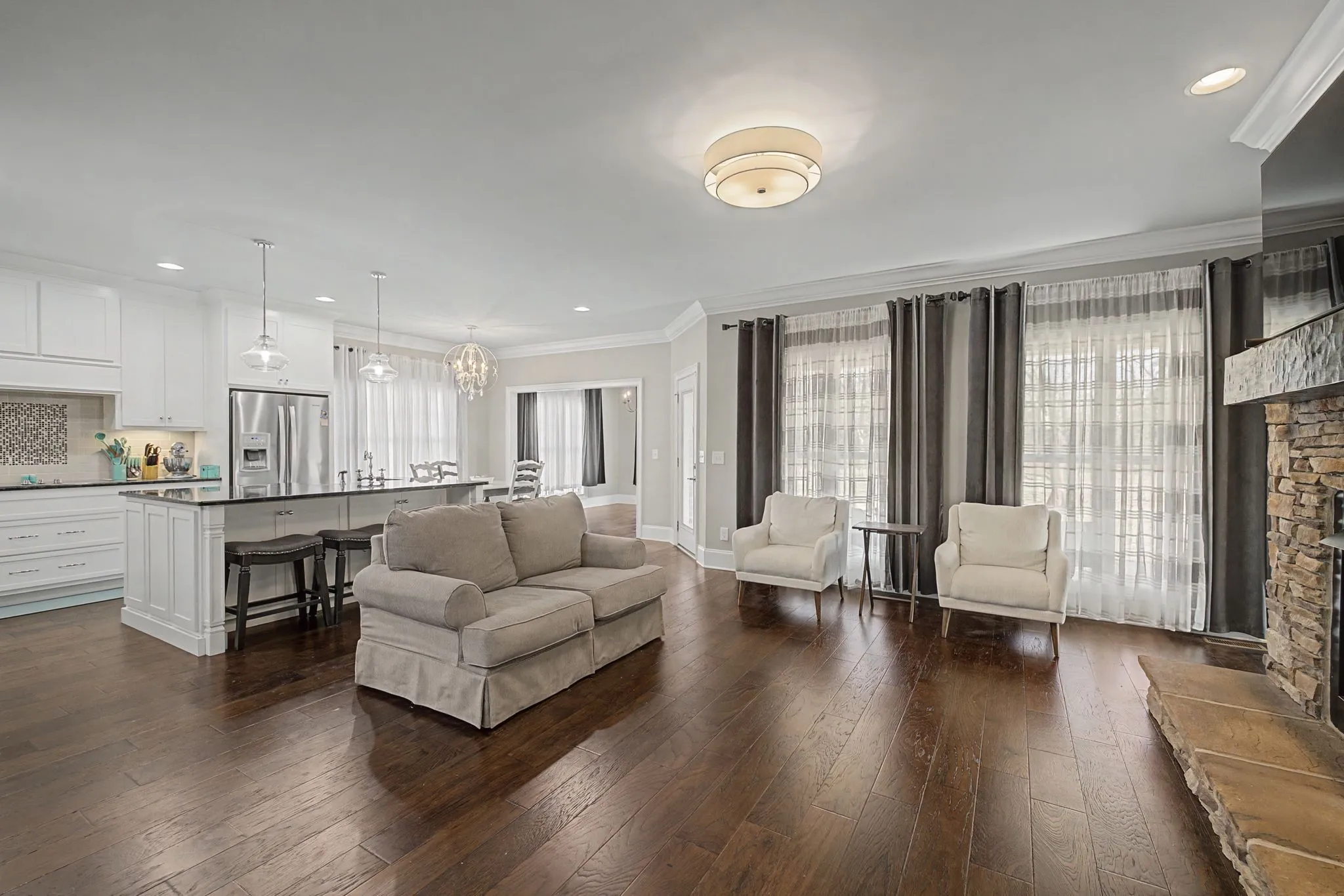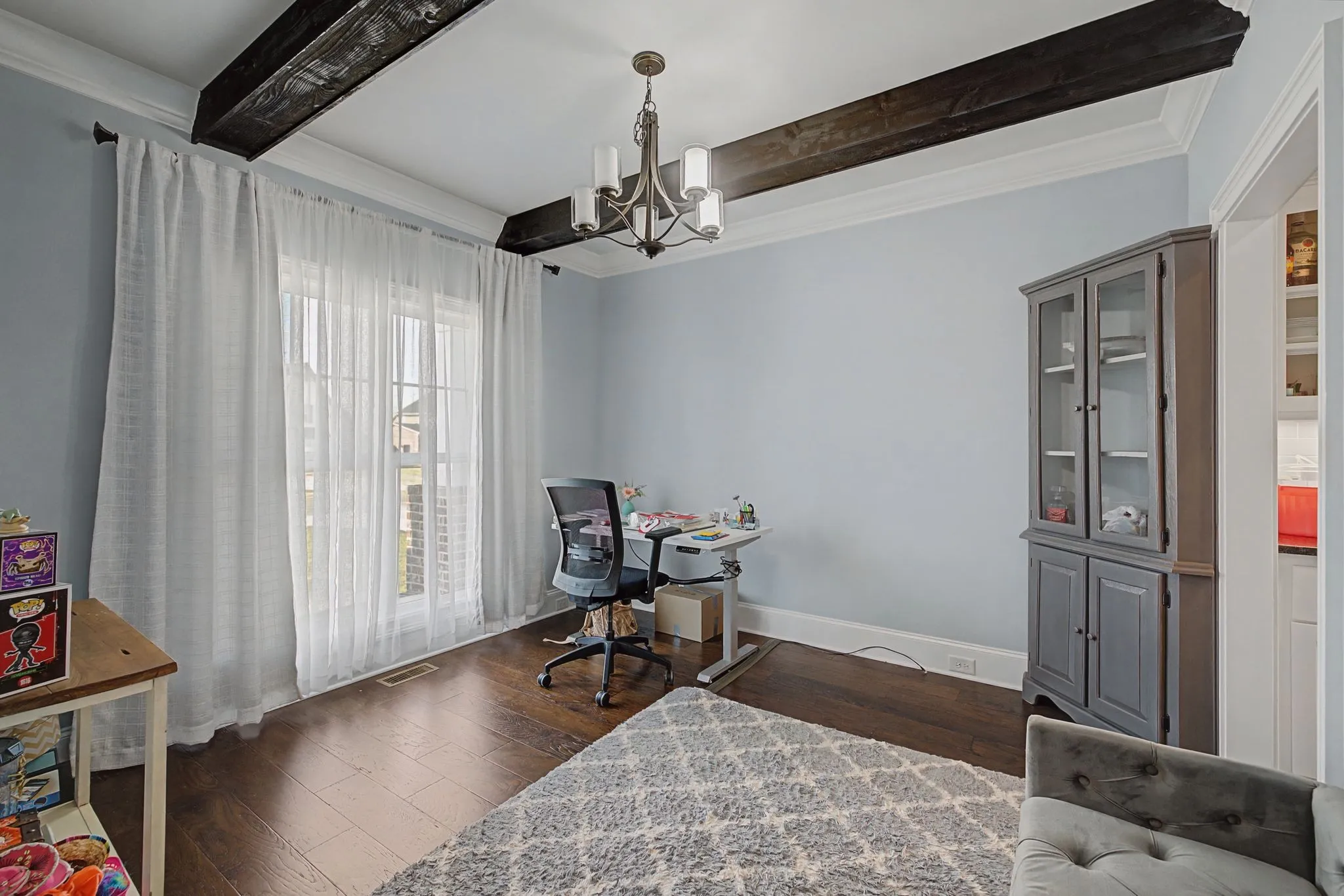 Featuring a den, sunroom, formal dining room, theater room, and a spacious bonus room, there’s truly a place for everyone. Stunning ceiling beams, rich hardwood floors, and a beautiful stone fireplace create warmth and character, while top-of-the-line finishes shine in every detail.