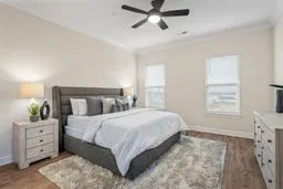 Step inside to discover an open, light-filled layout with soaring 10 ft ceilings on the main level, elegant 8 ft doors and premium architectural details. The chef – inspired kitchen features quartz countertops, a wood decorative vent hood , 5-burner gas cooktop, bult in wall ovens , and under cabinet lighting. The main floor primary suite offers a peaceful retreat with spacious walk-in closet.
