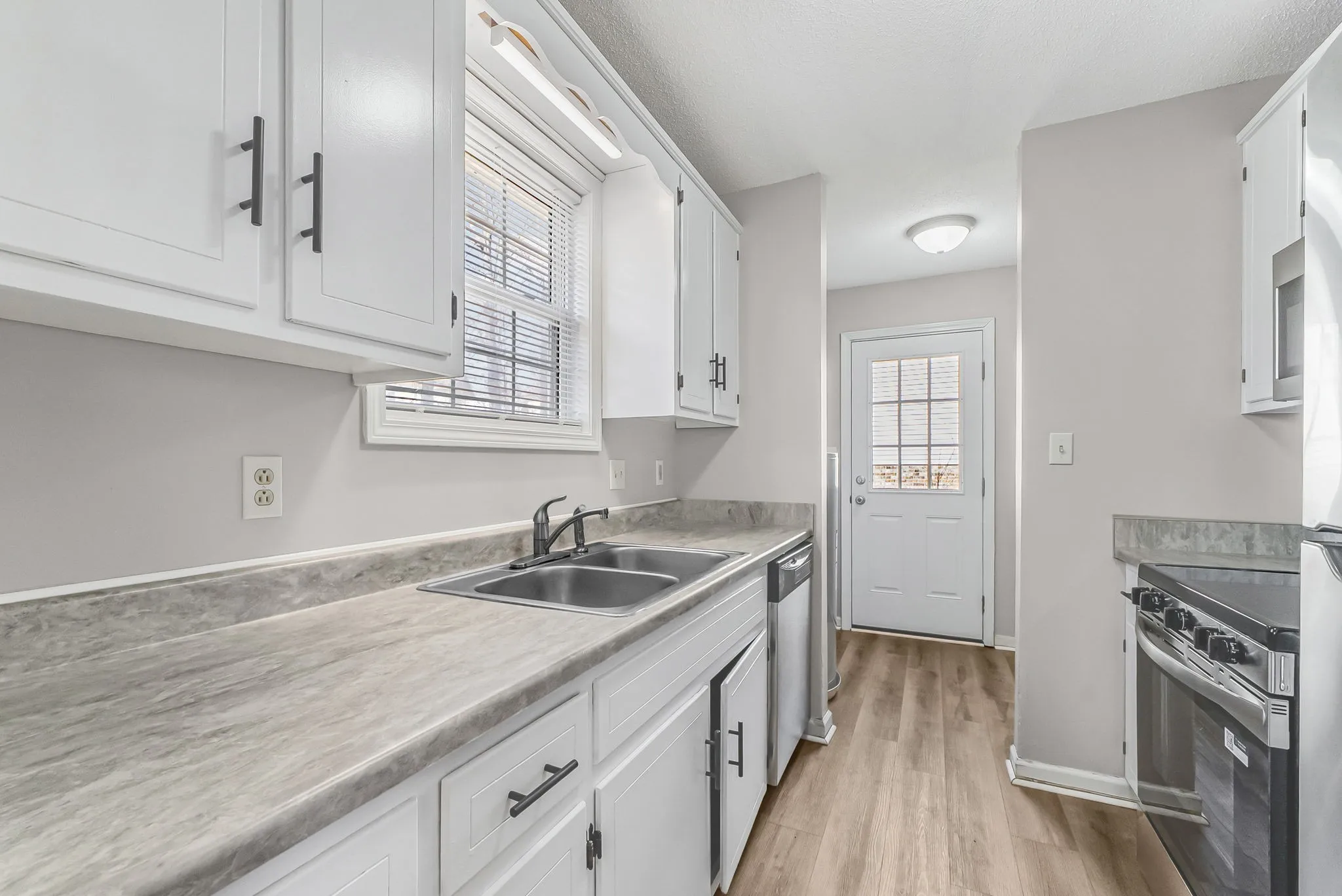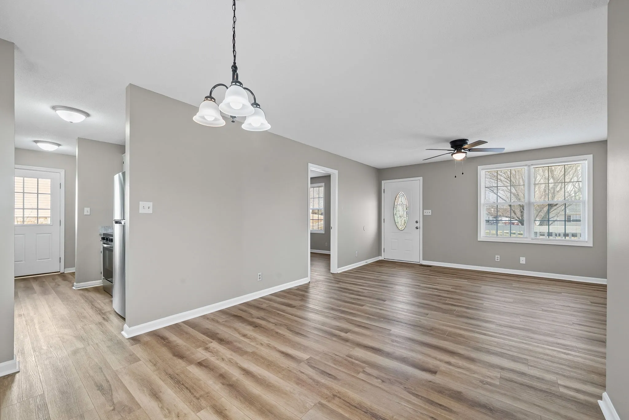 Step inside to an bright, open living room that flows seamlessly into the dining area, creating the perfect space for relaxing or entertaining. The kitchen is thoughtfully set apart, complete with stainless steel appliances, ample cabinetry for storage, and a window overlooking the backyard that fills the space with natural light.