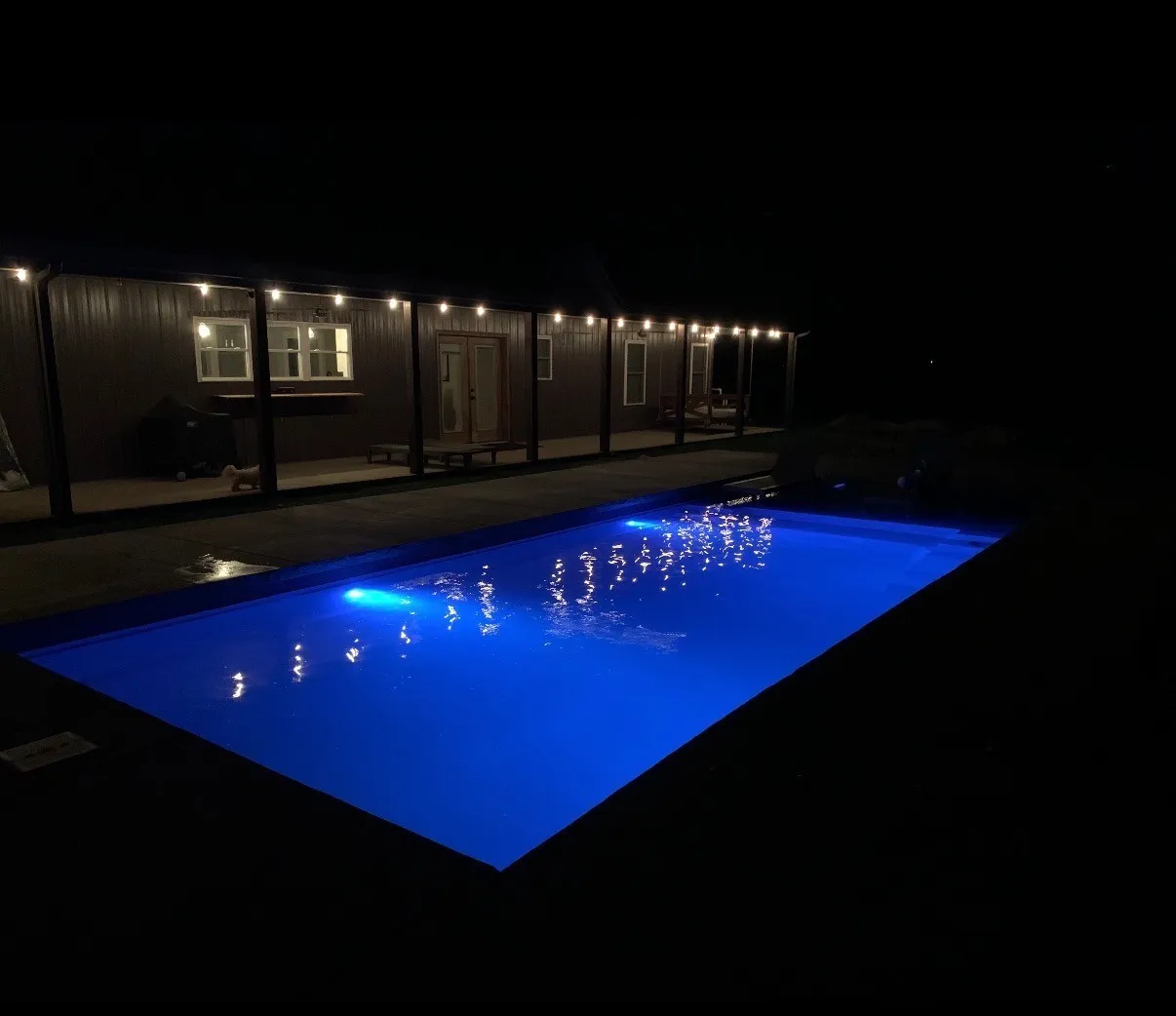 Enjoy outdoor living with speakers wired for surround sound on the back porch and an in-ground fiberglass pool with splash pad and built-in bubblers. The massive 34×40 garage includes two oversized doors, half bath, custom bar, built-in storm shelter, and tankless water heater.