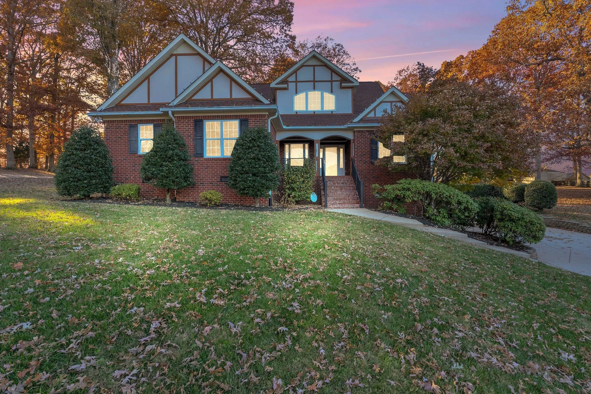Upstairs, the home offers three generously sized bedrooms, each featuring oversized closets and lovely views of the property. The enormous recreation room is perfect for hosting gatherings, with plenty of room for a Super Bowl party. The garage is a standout, with ample space for a tandem third car or a sizable workshop. Evening lighting on the home casts a beautiful look on this lovely Tudor home. To top it off, the home is equipped with a nearly new $20,000 whole-house Generac generator, ensuring peace of mind during power outages.