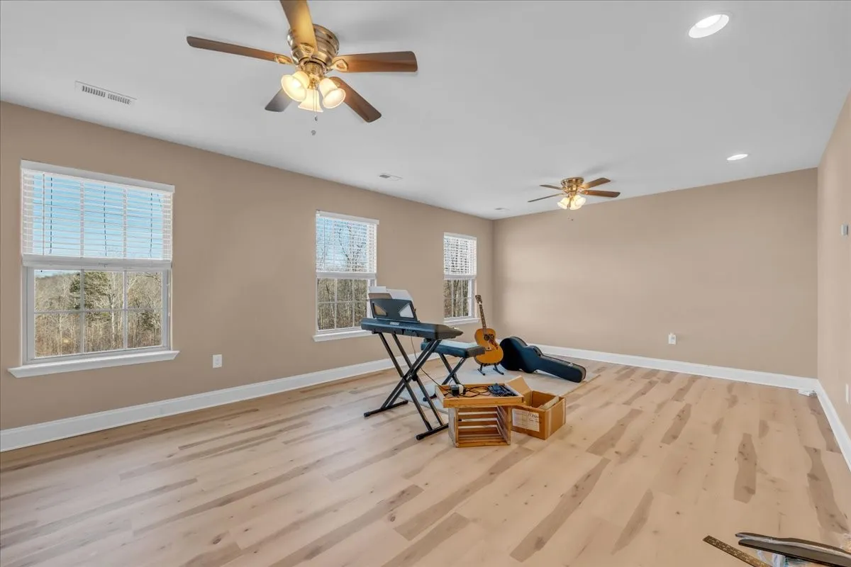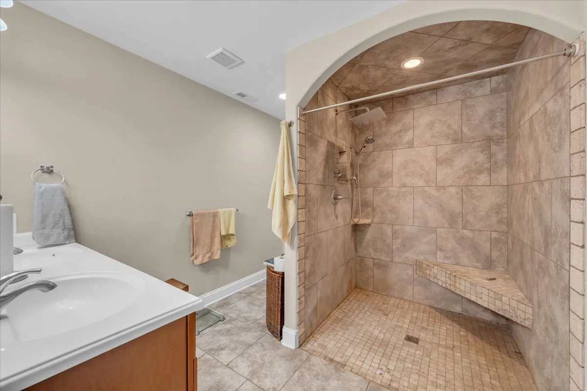 Inside, the primary suite offers a walk-in shower and walk-in closet. The upstairs includes a spacious bonus room with a full bath and additional storage in easily accessible attic space, providing flexible living or guest accommodations.