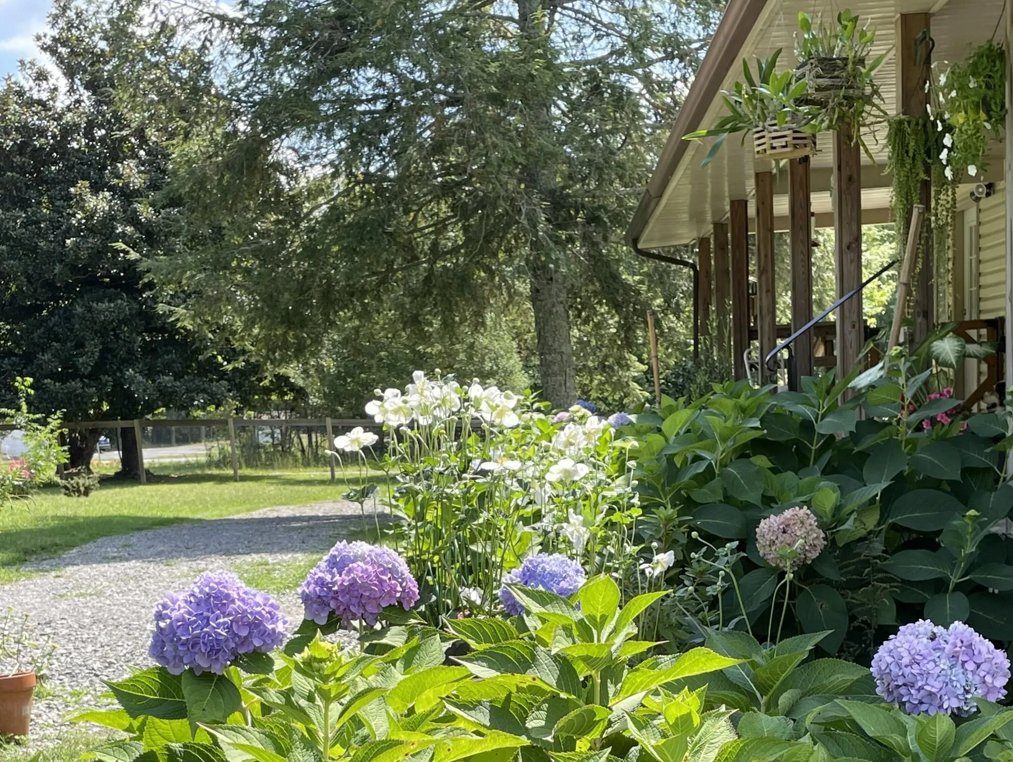 The farmhouse has a welcoming front porch, surrounded by hydrangeas, azaleas, and more, with a porch swing just waiting for you. As you enter, there is a large family room with a woodstove fireplace open to a remodeled eat-in kitchen, accommodating a table for 8 w/large hutch. There is also a mudroom & a half bath, with room to add a shower. Down the hall are 3 bedrooms w/full bath next to the primary bedroom. Enjoy the picture window overlooking the land and visiting wildlife from your bed. The back of the house also has a 200 sq ft screened porch, used most of the year with lovely views of the property.