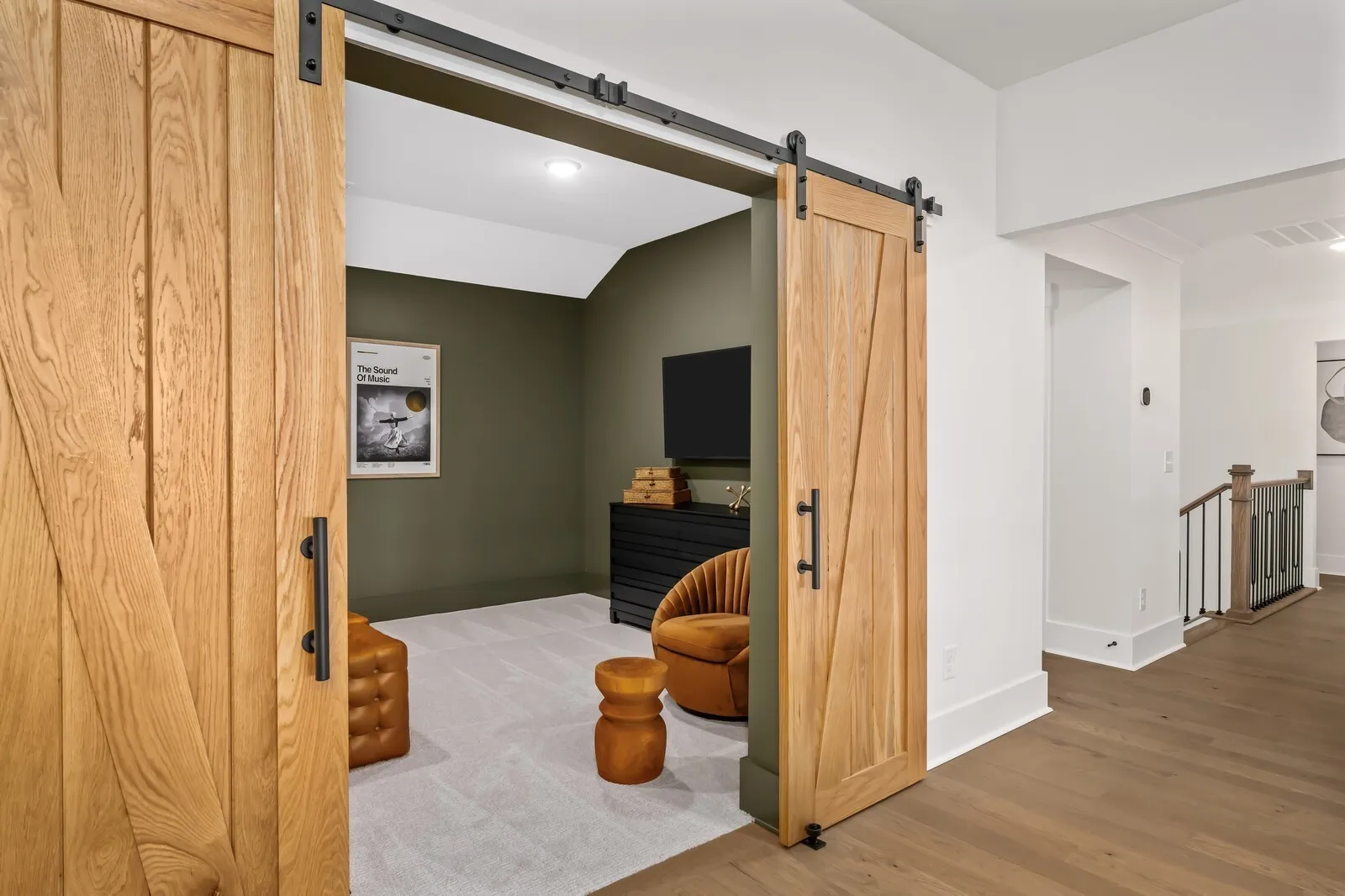 Upstairs, you’ll find three additional en-suite bedrooms, a 33-foot game room with wet bar, and a dedicated media room—perfect for entertaining or relaxing at home. Hosting gatherings is effortless with the second-story covered porch, offering a unique outdoor retreat ideal for holiday celebrations or year-round enjoyment.