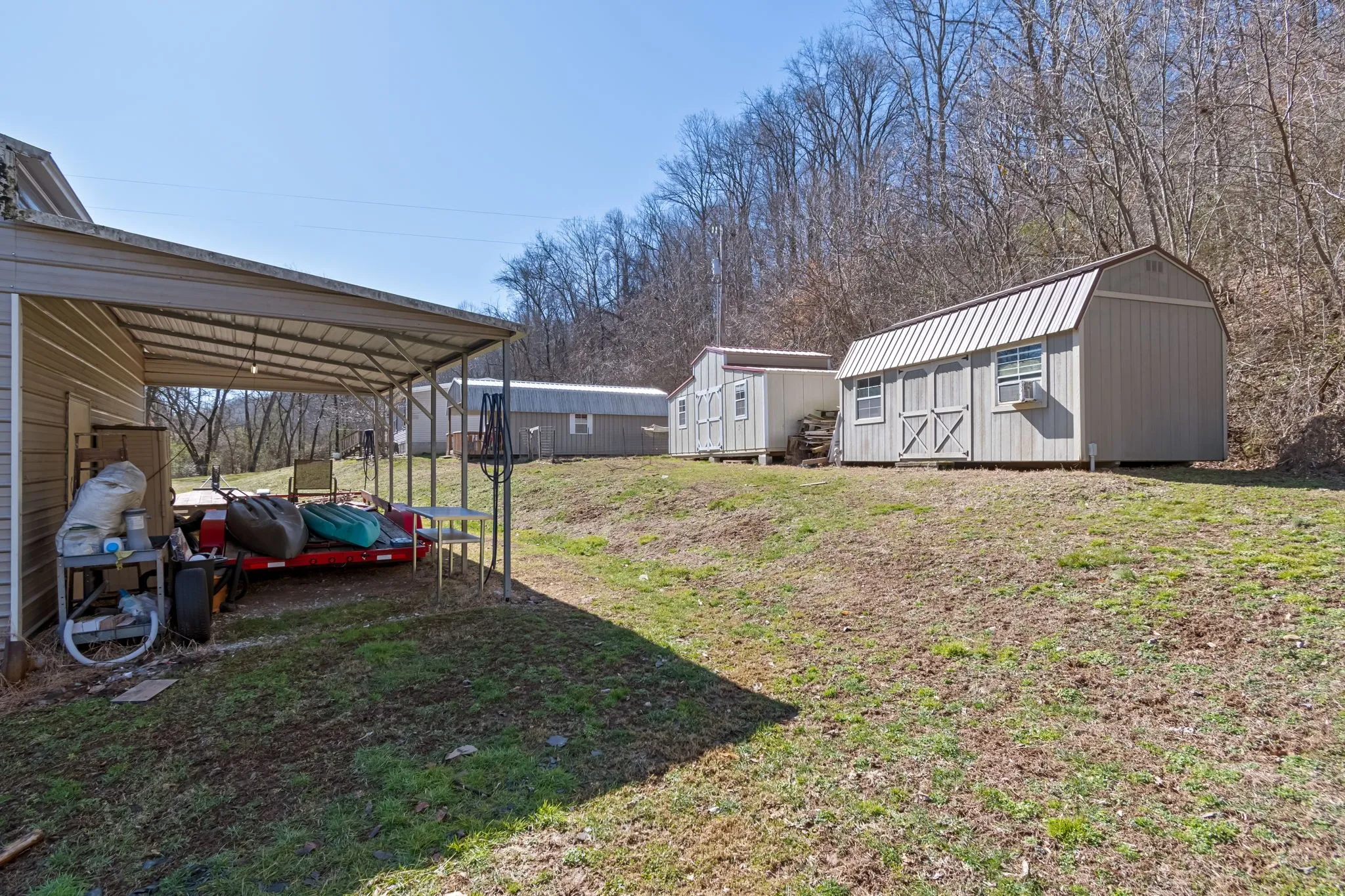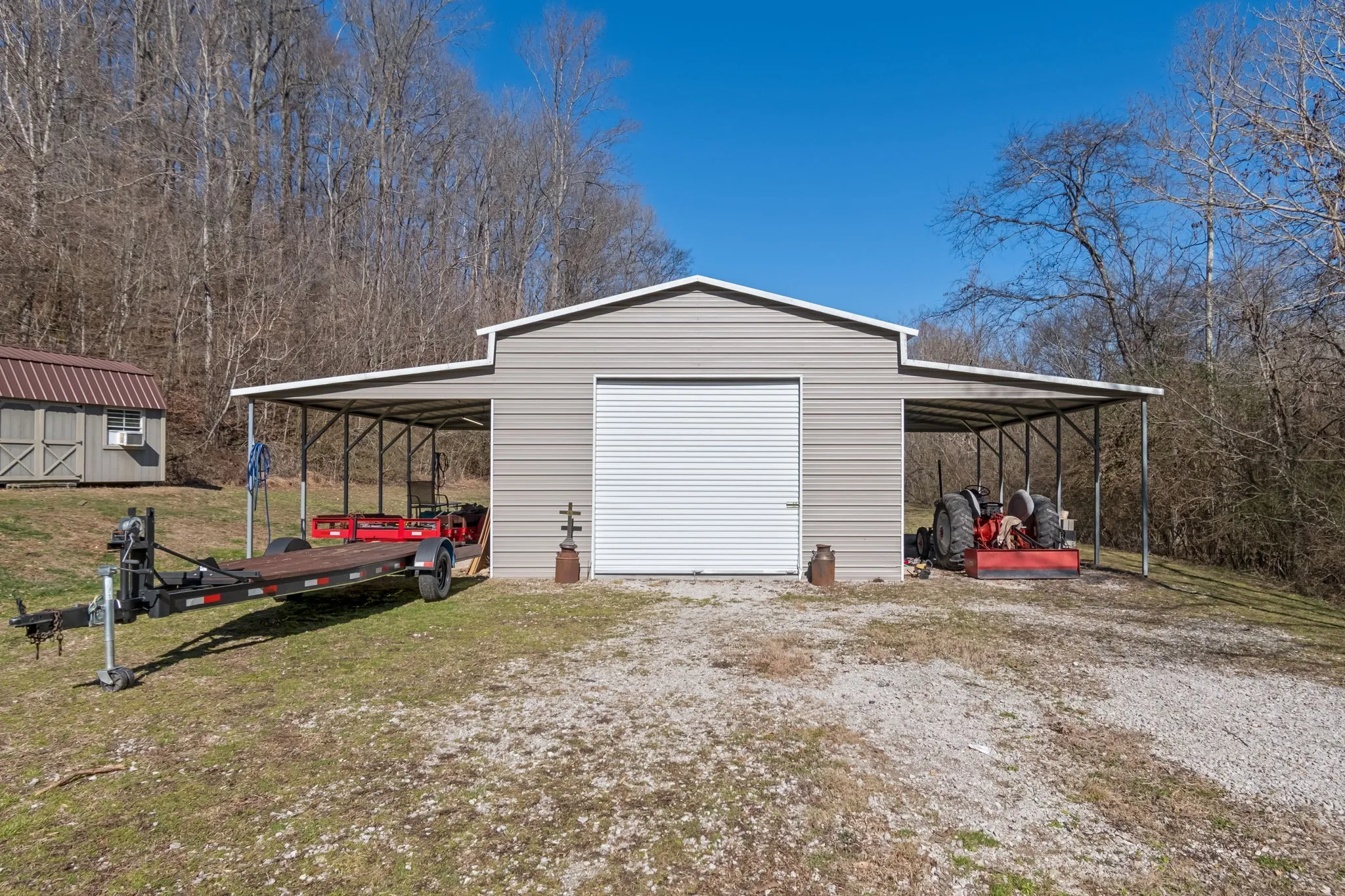 This peaceful little getaway is located in Santa Fe,TN. With just over 1400 sq ft, this 3bed/2bath home is nestled on 8+ private acres, next to a beautiful spring fed year round creek and surrounded by beautiful green Tennessee hills. In addition to the residence, there is a 20×25 shop with roll up doors and pull throughs on either side. There are also two brand new storage barns with electricity and a partially built “tiny house” just waiting for someone to come and finish it! Schedule your showing today and make this place YOUR little slice of heaven!